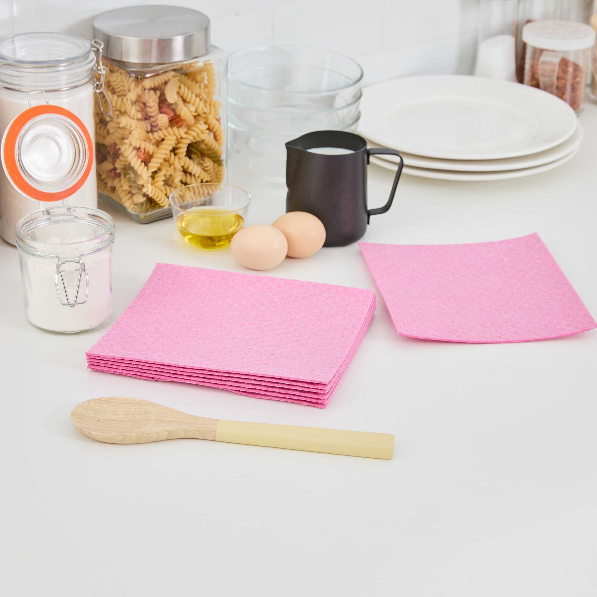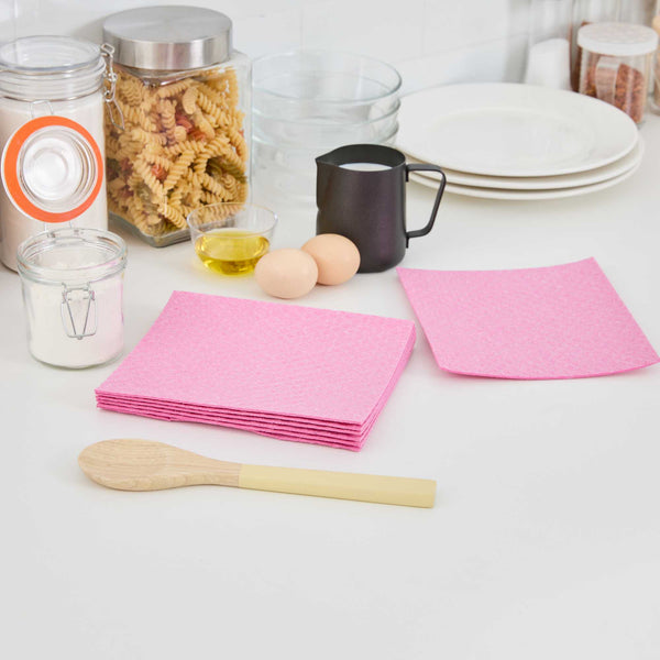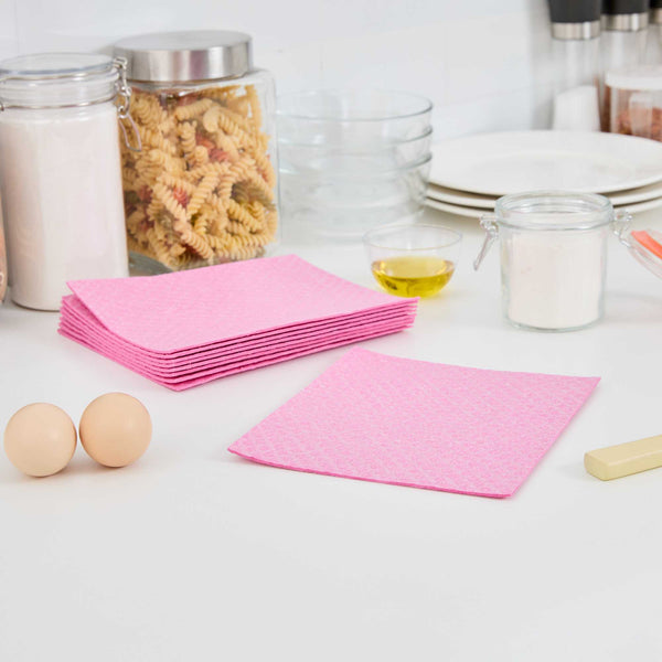 Streamline cleaning operations with our Clean Tek Professional Pink Reusable Swedish Dishcloths. Built from super absorbent cellulose, these Swedish dishcloths efficiently soak up spills and wipe surfaces clean without leaving residue. Engineered for versatility, these reusable cleaning cloths soften when wet and offer a slightly gritty texture when dry, ideal for scrubbing pots, dishes, or countertops. Crafted from biodegradable and compostable materials, these eco-conscious dish towels support sustainable cleaning practices in foodservice environments. Their durable build allows for repeated use, making them a practical alternative to disposable towels. Dishwasher-friendly and easy to sanitize, these gray dishcloths promote hygiene and reduce downtime in commercial kitchens. Measuring 6.77 inches in length by 7.68 inches in width, these cloths deliver dependable coverage with each use. Sold in a 10 count box.