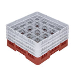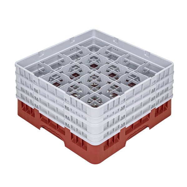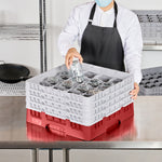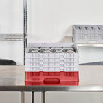 Enhance your kitchen's efficiency with our Clean Tek Professional Red Glass Rack, designed for optimal glassware storage and organization. Featuring 16 compartments, this commercial glass rack provides ample space for securely holding a variety of glassware. With a durable PP construction, this dishwasher rack withstands the rigors of frequent use in bustling foodservice settings. The easy-to-handle design of this compartment rack ensures seamless integration into your daily operations, while the open interior compartments allow for quick and easy placement and removal of barware. Solid external walls offer added protection, ensuring that your glassware remains safe and intact during transport and cleaning. Equipped with one full drop extender and three half drop extenders, this barware organizer can be customized to accommodate various glass heights and shapes. Measuring 19.69 inches in length by 19.69 inches in width by 10.51 inches in height, this glass rack is perfectly sized to fit standard dishwasher models, maximizing your kitchen's productivity. Sold in a 1 count box.