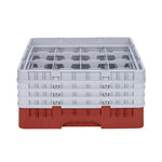 RED GLASS RACK - 16 COMPARTMENTS, 1 FULL AND 3 HALF DROP EXTENDERS