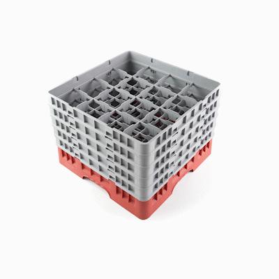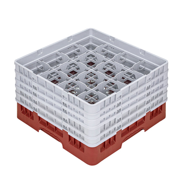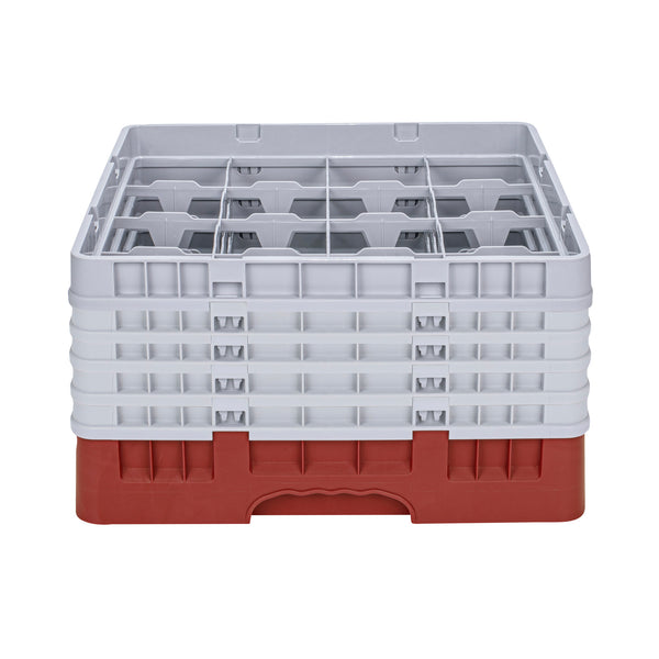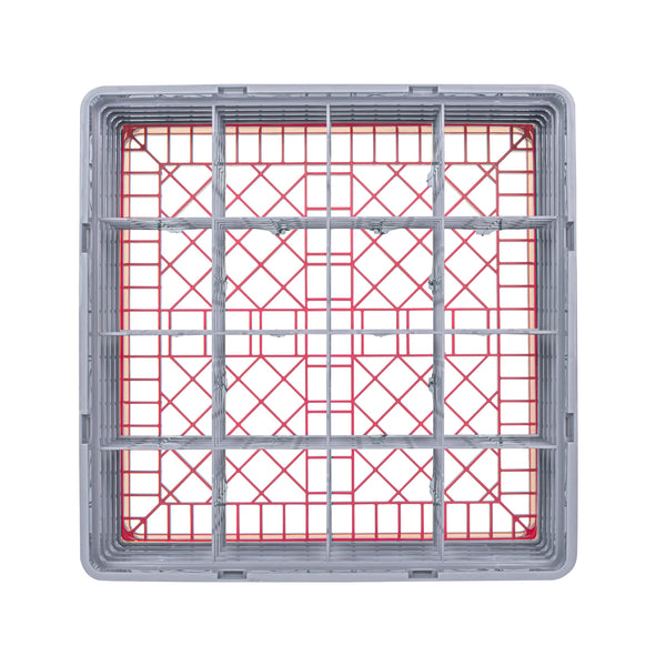RED GLASS RACK - 16 COMPARTMENTS, 1 FULL AND 4 HALF DROP EXTENDERS
