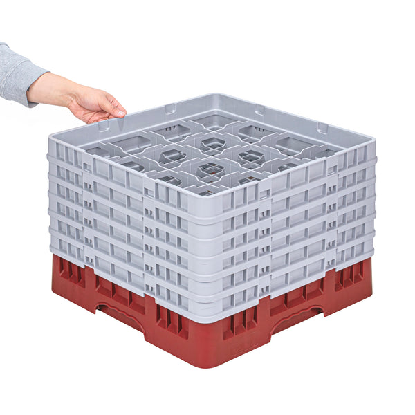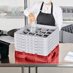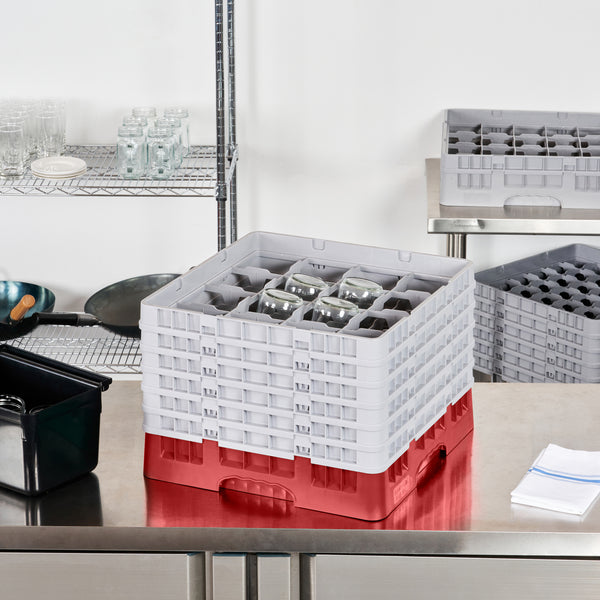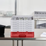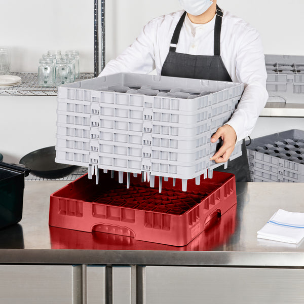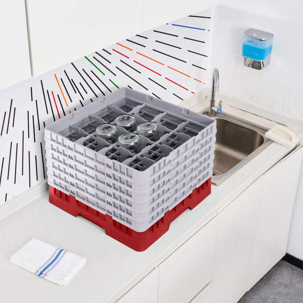 Optimize your glassware storage solutions with our Clean Tek Professional Red Glass Rack. Featuring 16 compartments, this commercial glass rack ensures that each piece of glassware has its own safe space. With one full drop extender and five half drop extenders, this rack easily accommodates various glass sizes, making it the perfect dishwasher rack for busy kitchens. Crafted from durable PP material, this compartment rack is designed to withstand rigorous daily use. The easy-to-handle design allows for quick transport and effortless reorganization, enhancing efficiency in your bar or restaurant. Open interior compartments provide ample airflow, ensuring your barware organizer keeps glasses clean and dry. Solid external walls add an extra layer of protection, making this rack a reliable choice for any commercial setting. Measuring 19.69 inches in length by 19.69 inches in width by 13.74 inches in height, this glass rack fits seamlessly into most dishwashing setups. Sold in a 1 count box.