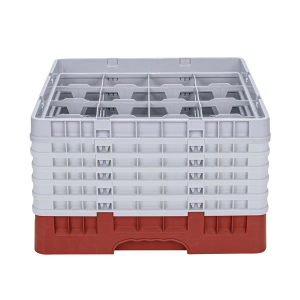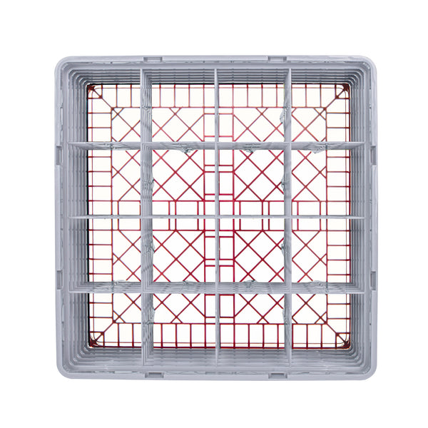 RED GLASS RACK - 16 COMPARTMENTS, 1 FULL AND 5 HALF DROP EXTENDERS