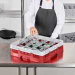 RED GLASS RACK - 16 COMPARTMENTS, 1 FULL DROP EXTENDER