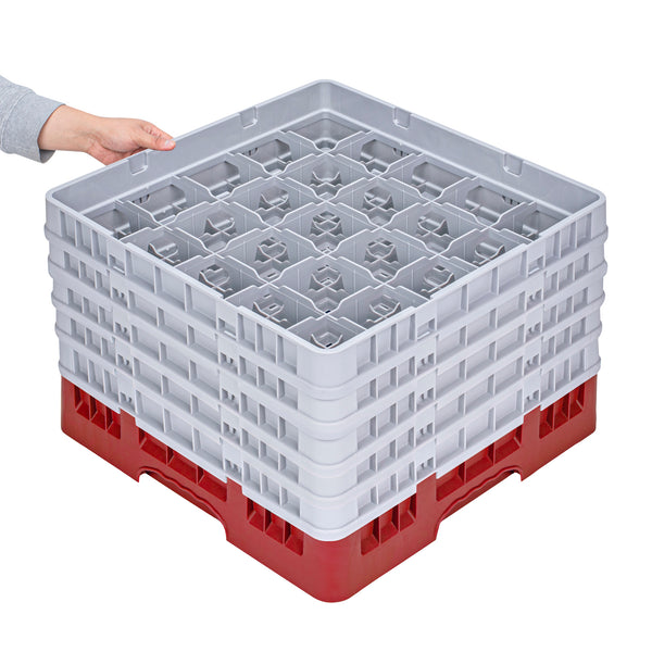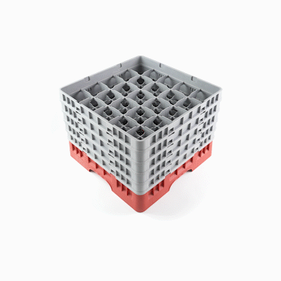RED GLASS RACK - 25 COMPARTMENTS, 1 FULL AND 4 HALF DROP EXTENDERS