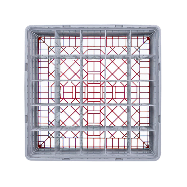 RED GLASS RACK - 25 COMPARTMENTS, 1 FULL AND 5 HALF DROP EXTENDERS