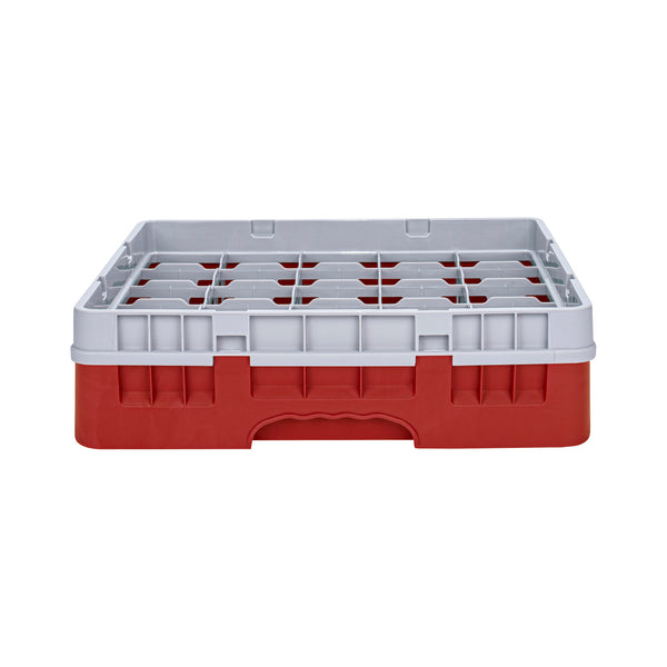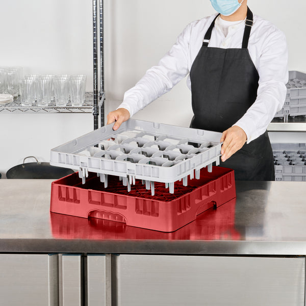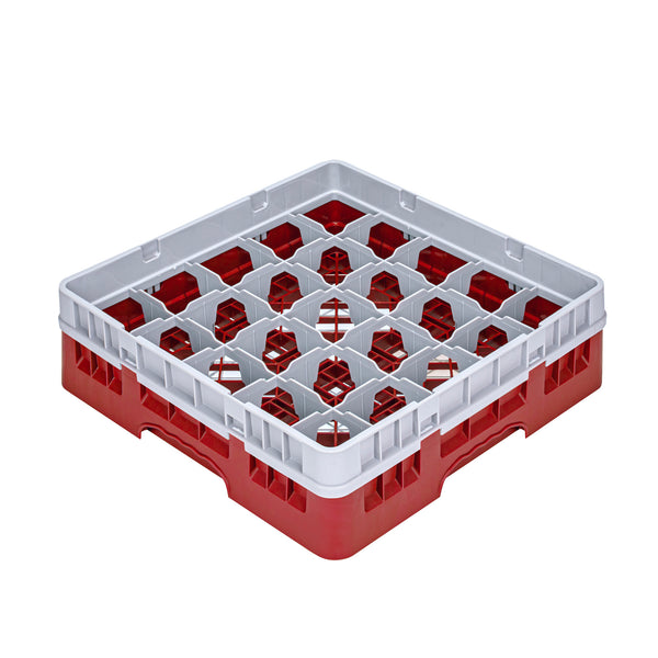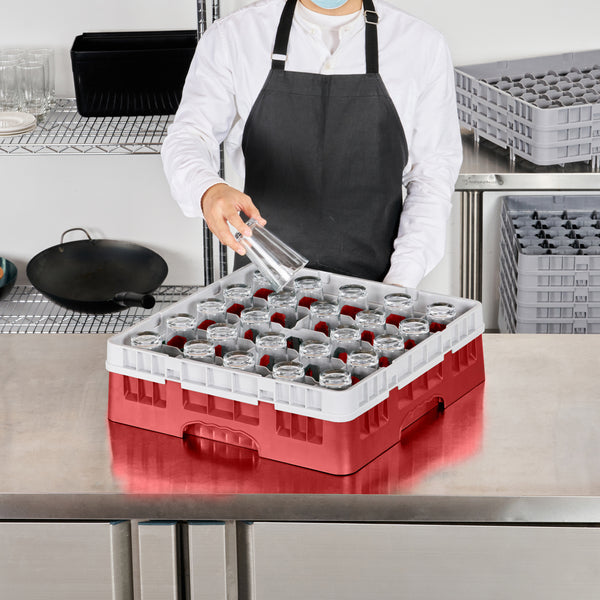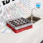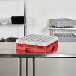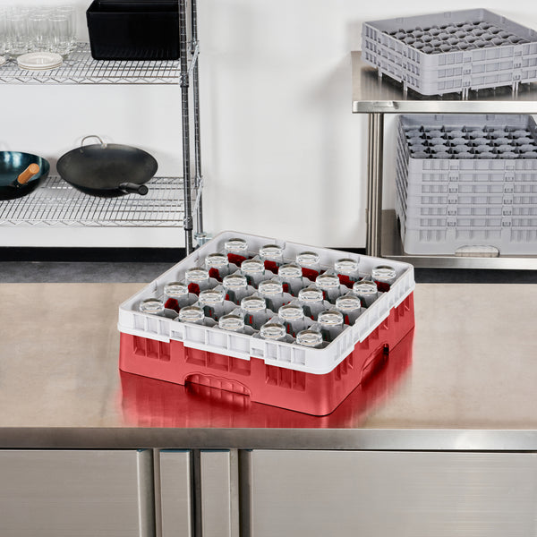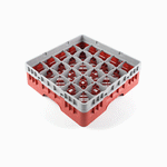 Our Clean Tek Professional Red Glass Rack offers the ultimate solution for glassware storage in busy kitchens and bars. Featuring 25 compartments, this compartment rack ensures each glass is securely held, preventing breakage during washing. The included full drop extender makes this dishwasher rack adaptable to varying glass heights, providing flexibility in your cleaning routine. Crafted from durable PP, this commercial glass rack withstands the rigors of daily use in the foodservice industry. Thanks to the easy-to-handle design, this barware organizer allows for effortless transport and storage of glassware. The open interior compartments facilitate thorough washing and drying, ensuring your glassware remains spotless. Meanwhile, the solid external walls of this rack provide enhanced protection against accidental knocks and bumps. Measuring 19.69 inches in length by 19.69 inches in width by 5.63 inches in height, this glass rack is perfectly sized to fit standard dishwasher dimensions. Sold in a 1 count box.