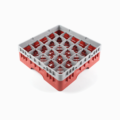 RED GLASS RACK - 25 COMPARTMENTS, 1 FULL DROP EXTENDER