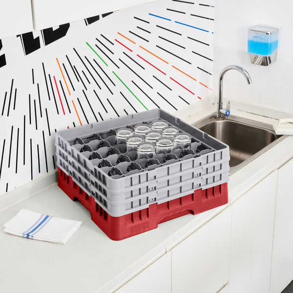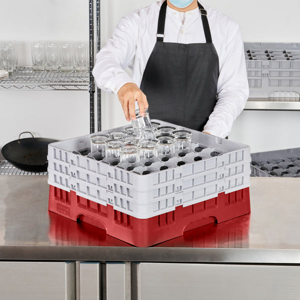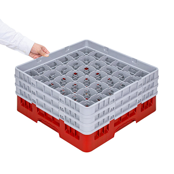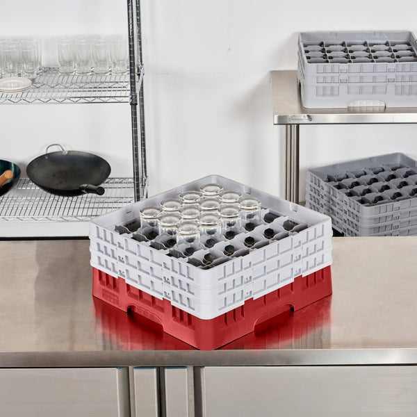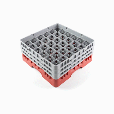 RED GLASS RACK - 36 COMPARTMENTS, 1 FULL AND 2 HALF DROP EXTENDERS