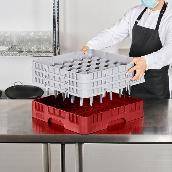 Streamline your dishwashing process with ease and efficiency. The Clean Tek Professional Interstackable Glassware Rack is crafted from durable plastic, featuring open interior compartments that allow for thorough, stress-free cleaning of your glassware. Its solid external walls provide exceptional protection to delicate glassware, even in the most bustling kitchen environments, making it an indispensable glassware rack. Designed with ease of handling in mind, this dishwasher glass rack enables swift service during peak dining hours. Measuring 19.69 inches in length and width, and 8.86 inches in height, its easy-to-stack design ensures that your storage area remains organized while optimizing drying time as a glass drying rack. Make this essential kitchen tool part of your operation and enhance the efficiency of your foodservice establishment. Each order includes 1 Clean Tek Professional Interstackable Glassware Rack.