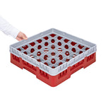 RED GLASS RACK - 36 COMPARTMENTS, 1 FULL DROP EXTENDER