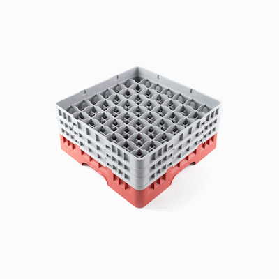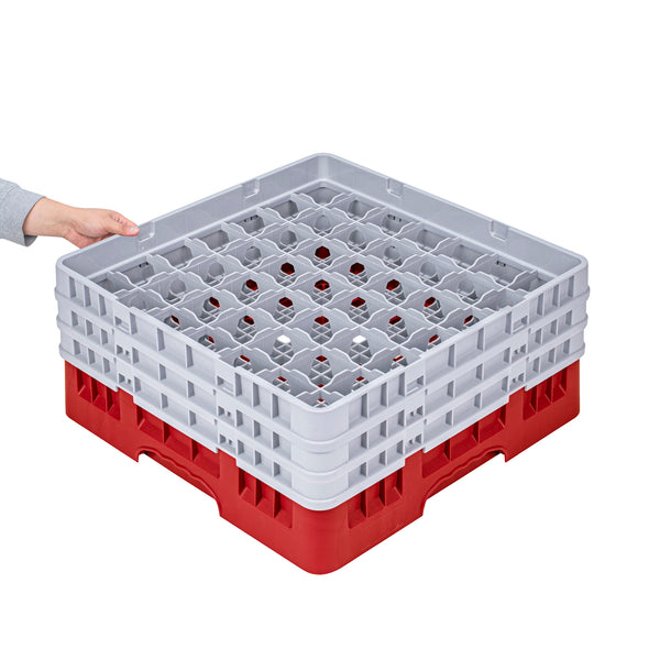 RED GLASS RACK - 49 COMPARTMENTS, 1 FULL AND 2 HALF DROP EXTENDERS
