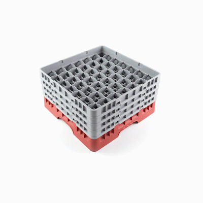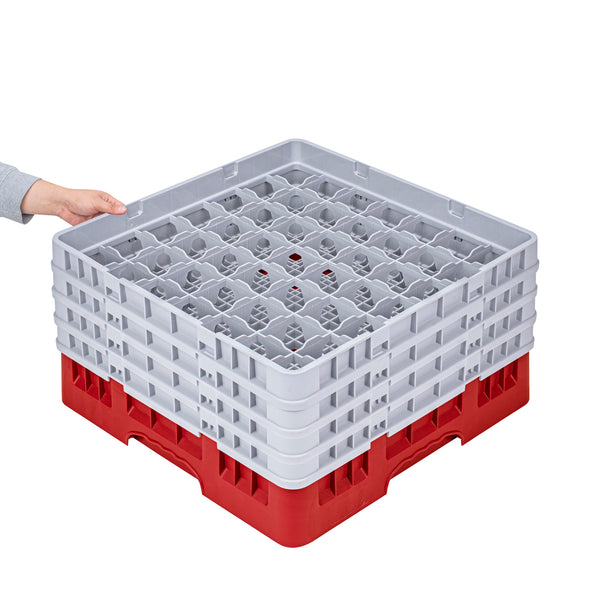 RED GLASS RACK - 49 COMPARTMENTS, 1 FULL AND 3 HALF DROP EXTENDERS