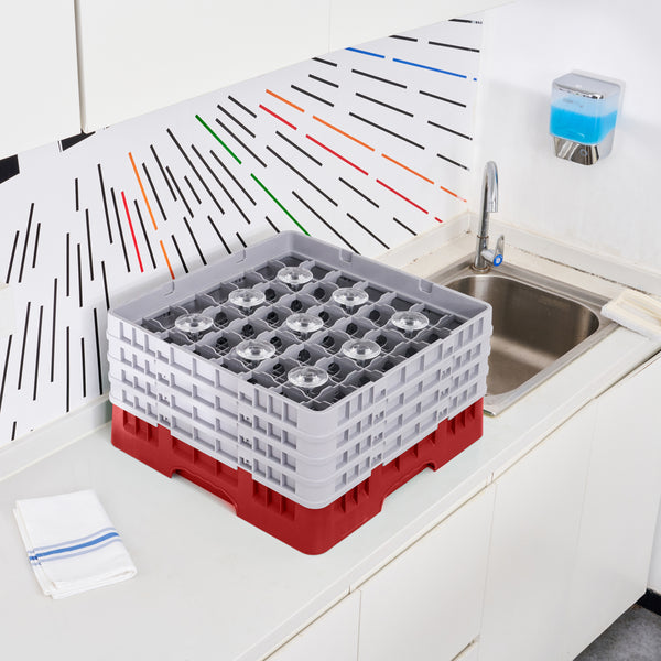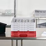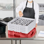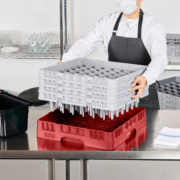 Optimize your establishment's efficiency with our Clean Tek Professional Red Glass Rack. This glassware storage rack boasts 49 compartments, making them perfect for organizing barware and ensuring everything stays in place. With a durable PP construction, this dishwasher rack offers long-lasting performance in any busy kitchen. The easy-to-handle design of this compartment rack allows for swift loading and unloading of glassware. Featuring a full drop extender and three half drop extenders, this rack accommodates various glass sizes effortlessly. The open interior compartments provide superior air circulation, ensuring glassware dries quickly and thoroughly. Meanwhile, the solid external walls of this commercial glass rack add an extra layer of protection during transportation and storage. Measuring 19.69 inches in length by 19.69 inches in width by 10.51 inches in height, this glass rack fits seamlessly into most dishwashers. Sold in a 1 count box.
