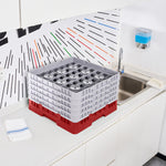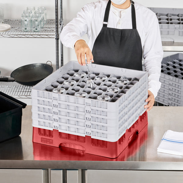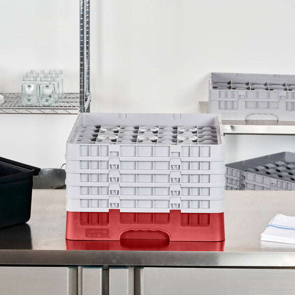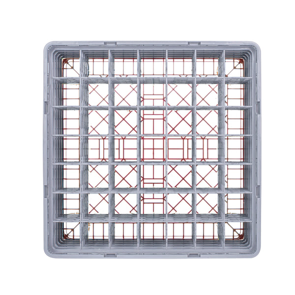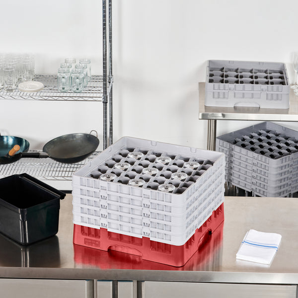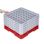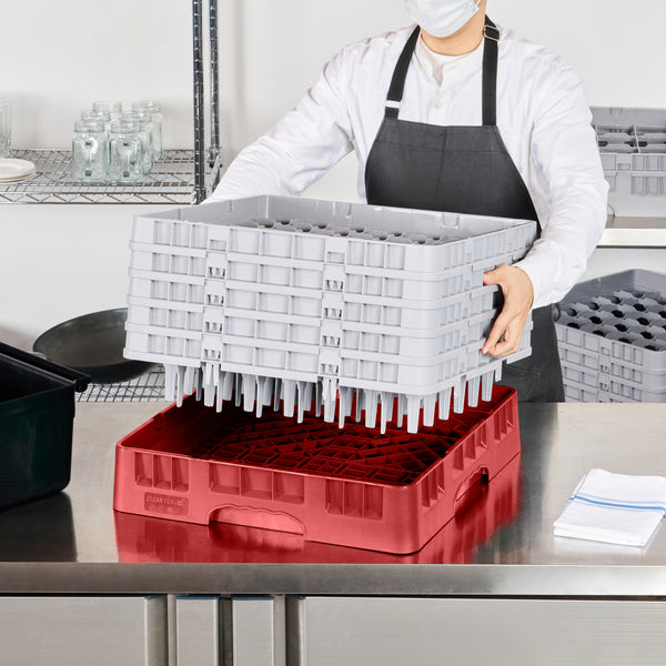 Enhance your glassware storage solutions with our Clean Tek Professional Red Glass Rack, designed to meet the rigorous demands of the foodservice industry. This dishwasher rack boasts 49 compartments, ensuring your glassware remains organized and protected during washing. For added versatility, this compartment rack includes one full drop extender and four half drop extenders, accommodating various glass sizes. Made from durable PP, this commercial glass rack withstands heavy-duty usage while maintaining a lightweight, easy-to-handle design. The open interior compartments of this barware organizer allow for efficient water flow and thorough cleaning. Meanwhile, the solid external walls offer additional protection, preventing breakages and enhancing durability. Measuring 19.69 inches in length by 19.69 inches in width by 12.13 inches in height, this glassware storage solution fits seamlessly into most commercial dishwashers. Sold in a 1 count box.