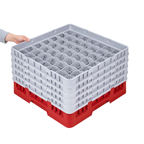 RED GLASS RACK - 49 COMPARTMENTS, 1 FULL AND 4 HALF DROP EXTENDERS