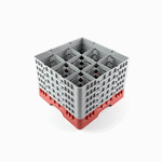 RED GLASS RACK - 9 COMPARTMENTS, 1 FULL AND 4 HALF DROP EXTENDERS