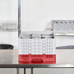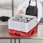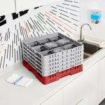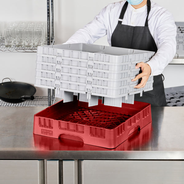 Effortlessly organize and protect your glassware with our Clean Tek Professional Red Glass Rack. Designed for optimal glassware storage, this rack features 9 compartments to keep your glasses securely in place. For added versatility, this dishwasher rack includes 1 full drop extender and 4 half drop extenders, accommodating various glass heights. Crafted from durable PP, this compartment rack ensures long-lasting performance in any busy kitchen or bar. The easy-to-handle design of this barware organizer makes loading and unloading a breeze. Open interior compartments promote efficient cleaning and drying of your glasses. With solid external walls, this commercial glass rack provides robust protection to prevent damage during transport. Measuring 19.69 inches in length by 19.69 inches in width by 12.13 inches in height, this glass rack offers ample storage space while fitting seamlessly into standard dishwashers. Sold in a 1 count box.