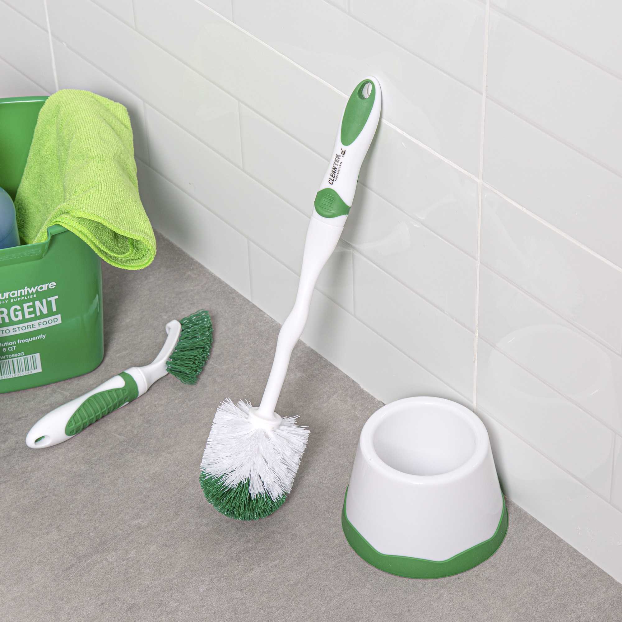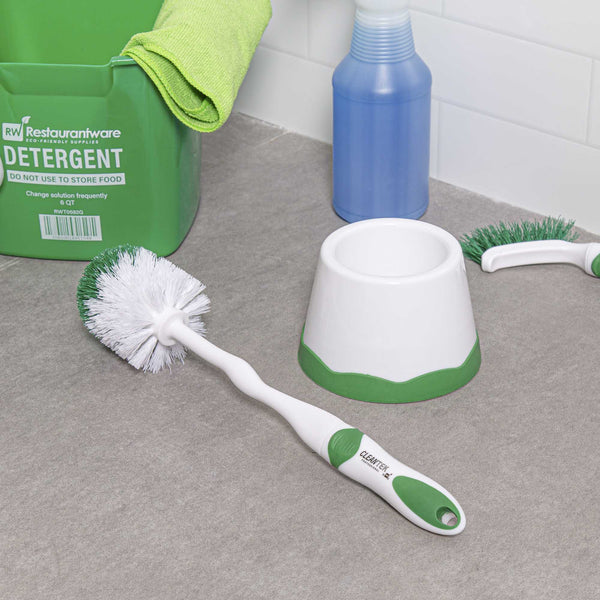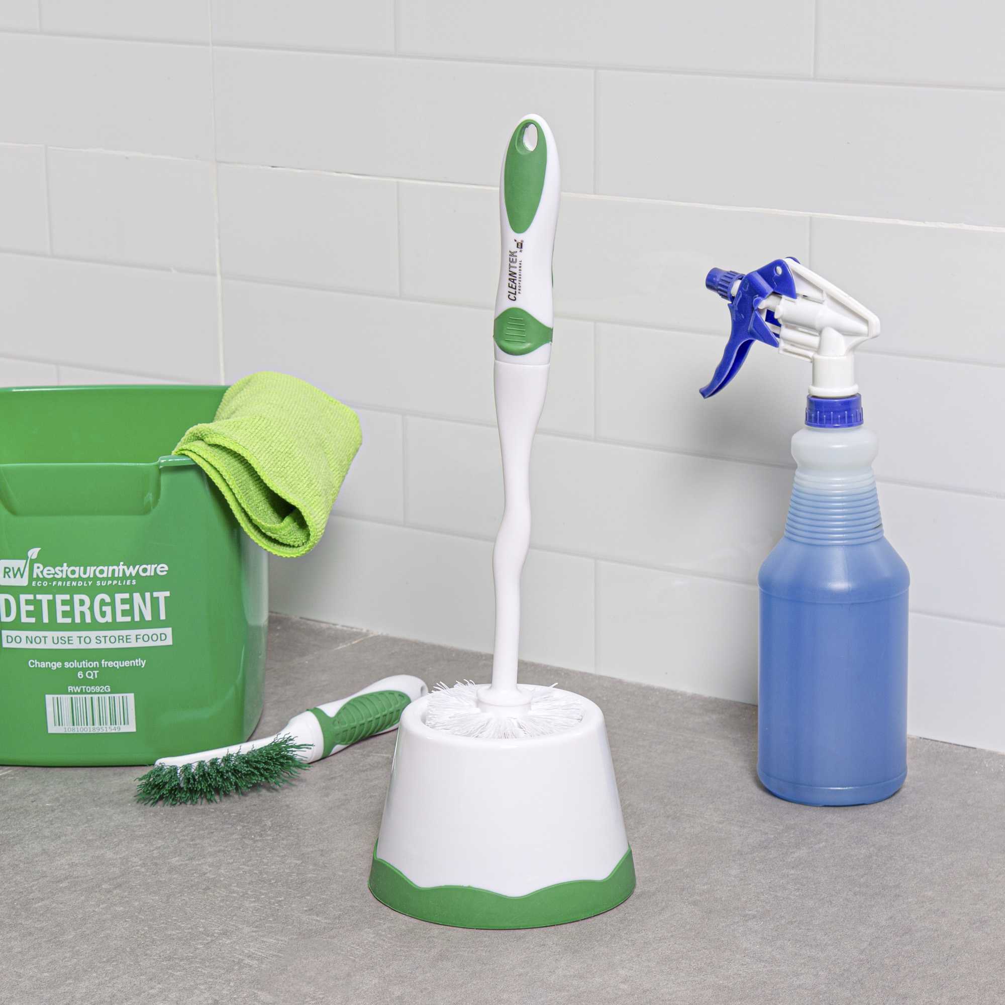 Ensure impeccable bathroom hygiene with leak-proof cleaning tools. The Clean Tek Professional Sealed Base Toilet Brush With Caddy features a sealed base that prevents leakage, maintaining cleanliness in your restroom setting. Equipped with green PP bristles, this toilet scrubber with holder provides thorough cleaning, removing stubborn stains and residue with ease. Its compact caddy design, measuring 15.7 inches in length, 4.9 inches in width, and 4.9 inches in height, saves valuable storage space, making it ideal for crowded janitorial closets or tight restroom areas. The ergonomic handle offers a comfortable grip, enhancing cleaning efficiency and reducing fatigue for janitorial staff. Crafted from plastic, this toilet brush with caddy ensures durability. Invest in this essential cleaning tool to maintain a pristine restroom with ease. Each order includes 10 Clean Tek Professional Sealed Base Toilet Brushes with Caddy.