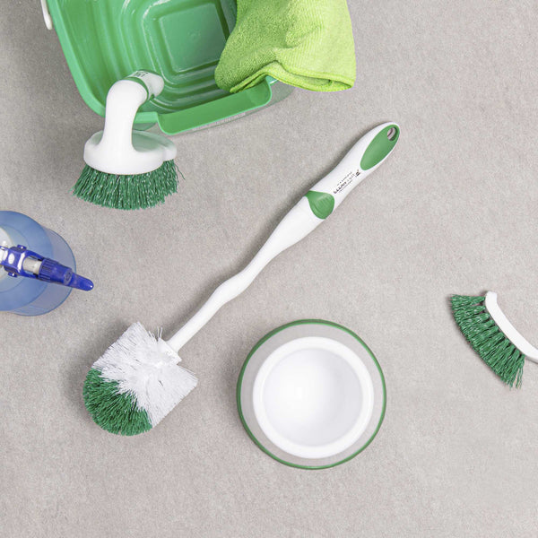 GREEN AND WHITE TOILET BOWL BRUSH - WITH CADDY