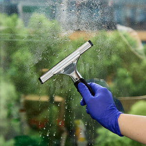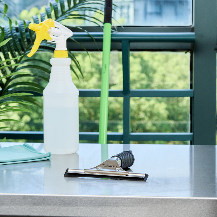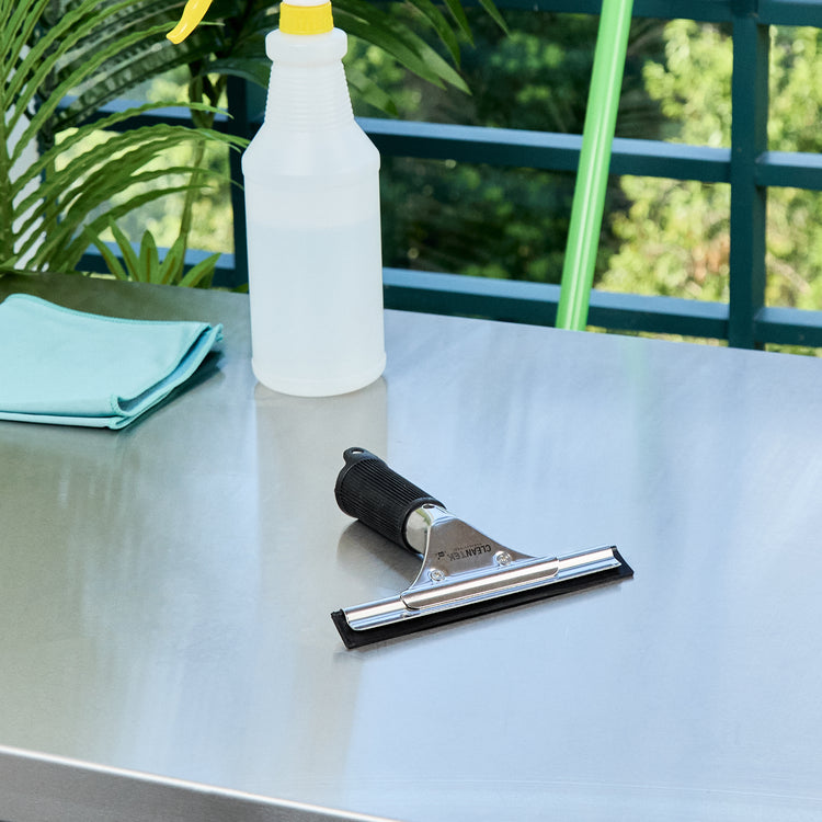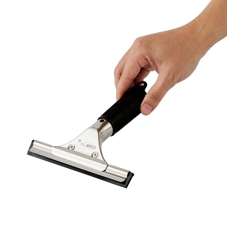 Efficiently clean windows with our Clean Tek Professional Stainless Steel Window Squeegee. This car squeegee features a non-slip grip rubber handle, ensuring secure and comfortable control, which minimizes the risk of slipping during use. With a rubber blade, this commercial squeegee provides a smooth, streak-free cleaning experience, effectively removing water and residue from glass surfaces. Crafted with a stainless steel frame, this window squeegee offers durability and ensures long-lasting performance. The versatile design of this window washing squeegee makes it ideal for cleaning windows in commercial and residential settings and vehicles. This windshield squeegee measures 5.91 inches in length by 5.91 inches in width by 1.18 inches in height. Sold in a 1 count box.