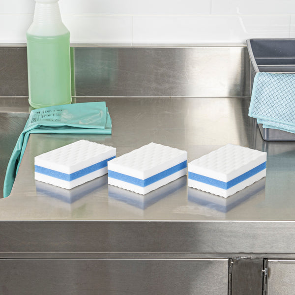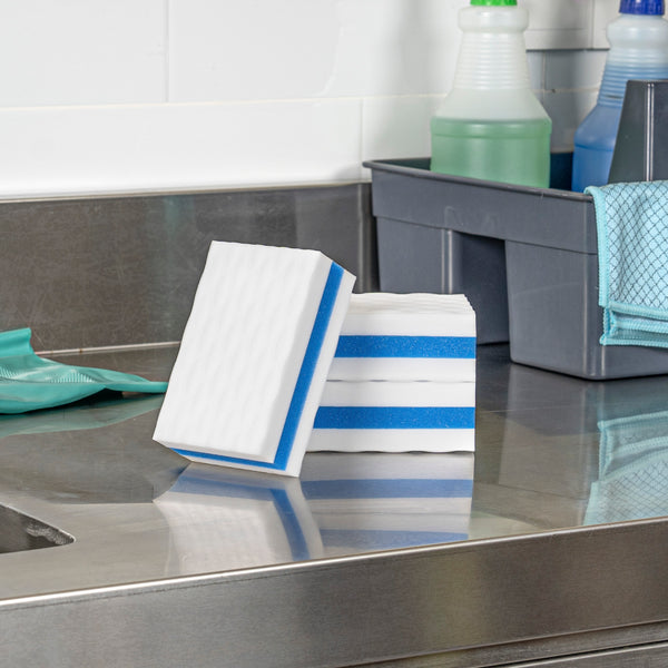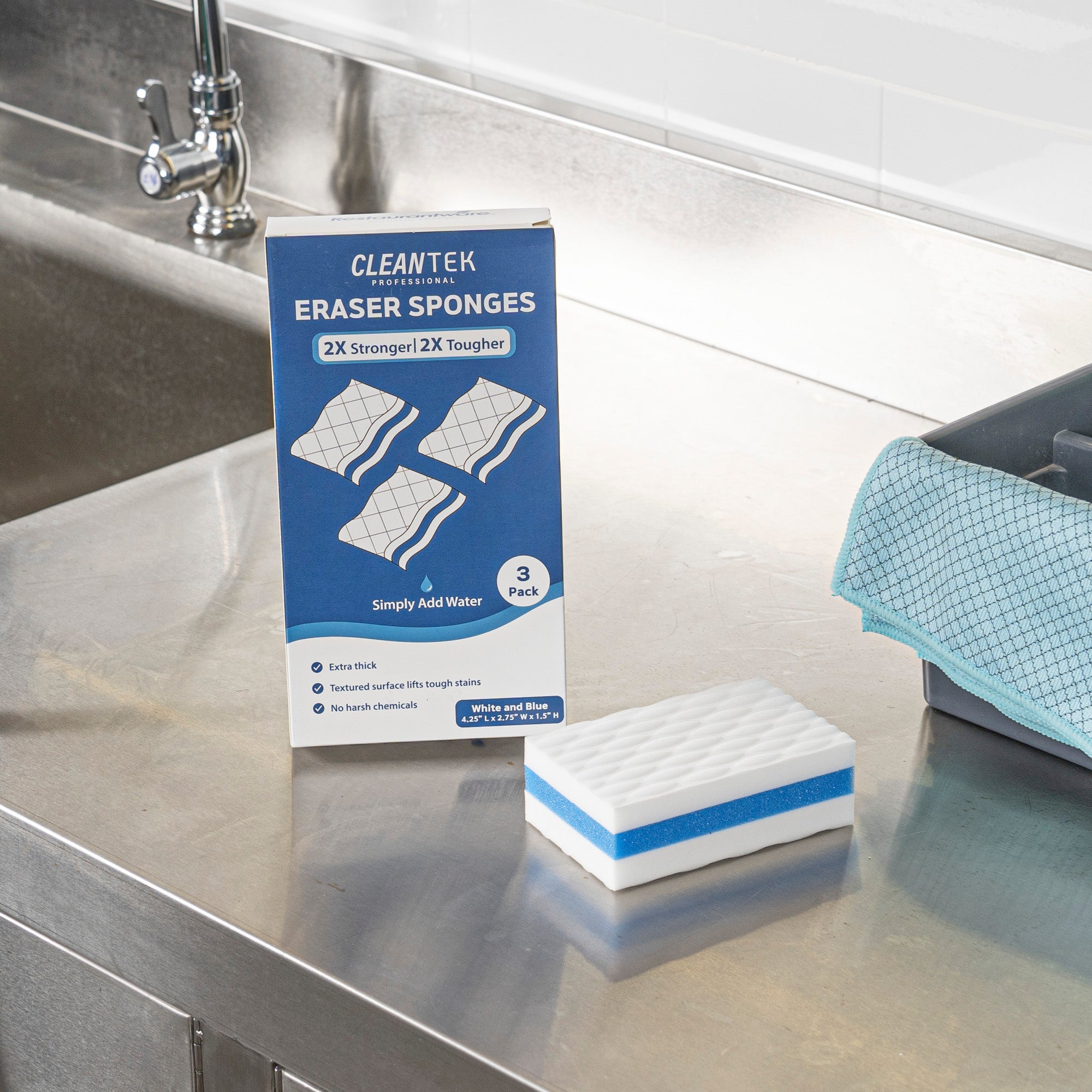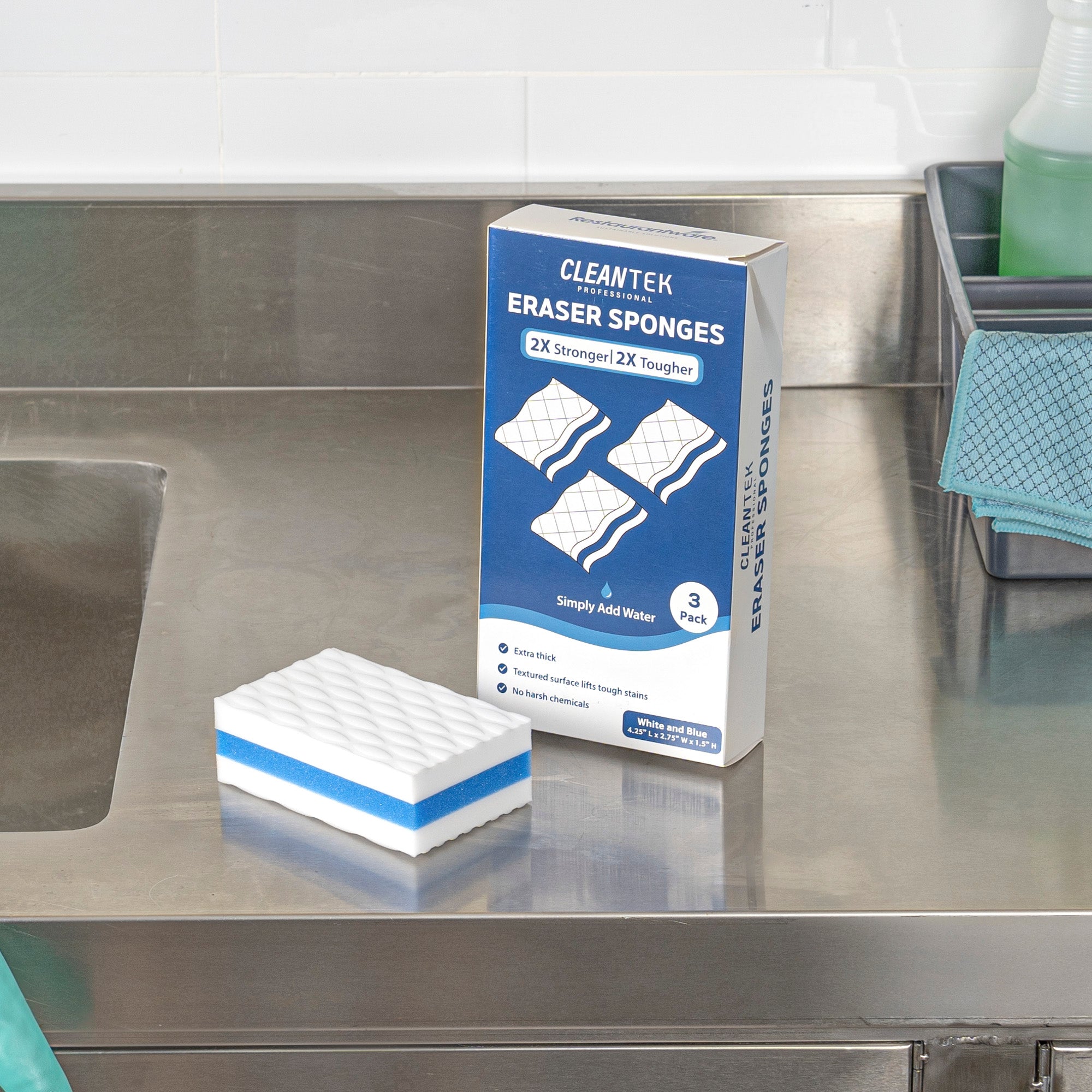 Effortlessly tackle stubborn stains with the Clean Tek Professional Stain-Remover Sponge Eraser. This sponge eraser is designed to eliminate tough stains with ease, ensuring your cleaning process is swift and effective. Made from durable plastic, this versatile melamine cleaning sponge is perfect for use on walls, floors, doors, baseboards, and appliances, offering unmatched flexibility in your cleaning routine. Its compact size, measuring 4.33 inches in length, fits into tight spaces, making it an ideal stain remover sponge for efficient use in any commercial kitchen or dining setting. Enhance the cleanliness and appearance of your establishment with this indispensable cleaning tool. Each order includes 60 Clean Tek Professional Stain-Remover Sponge Erasers.