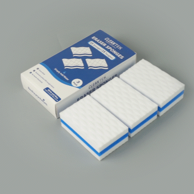 WHITE AND BLUE TRIPLE LAYER MELAMINE ERASER SPONGE