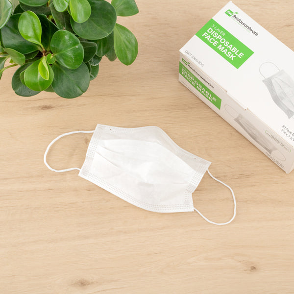 Provide protection using our Clean Tek Professional White Disposable Earloop Face Masks. Equipped with 3 layers of built-in filtration, these disposable face masks use layers of nonwoven fibers to shield the mouth, nose, and chin. Each of these face masks features a simple white finish that is conveniently latex-free and fiberglass-free for the ultimate comfort. Ideal for food preparation or janitorial services, these disposable face masks combine a fluid-resistant outer layer with an inner layer that is breathable and gentle on skin. These white earloop masks include a flexible nose wire and two elastic earloops for a customizable fit and easy mobility during use. Measuring 7 inches long by 3.75 inches wide, these white disposable face masks are designed to fit most people. These masks are not intended for medical use and are not proven to reduce the transmission of disease. Sold in a 50 count box.
