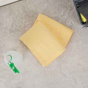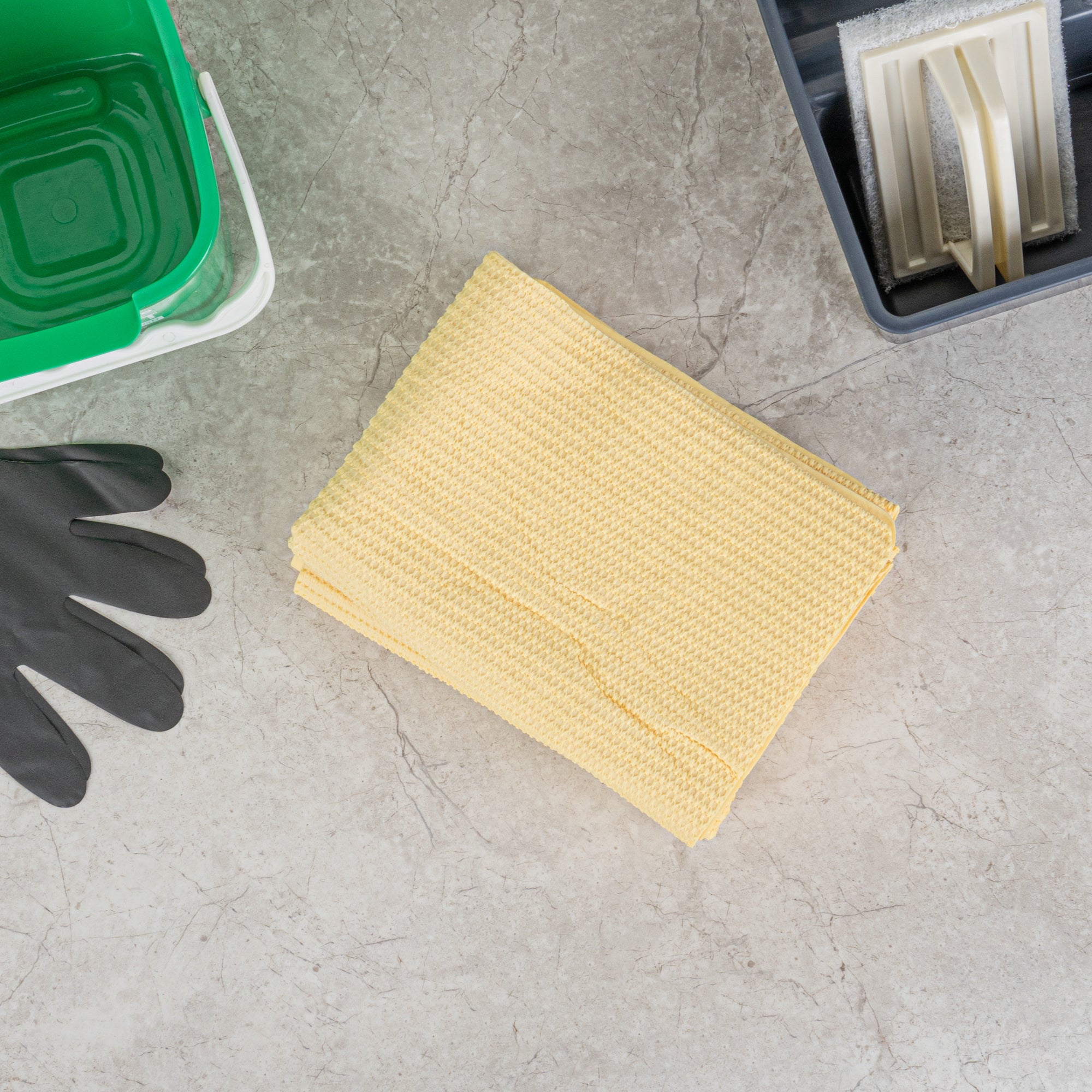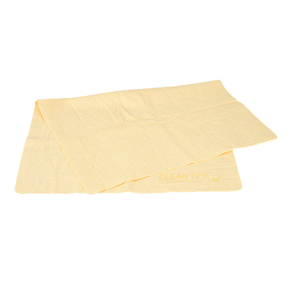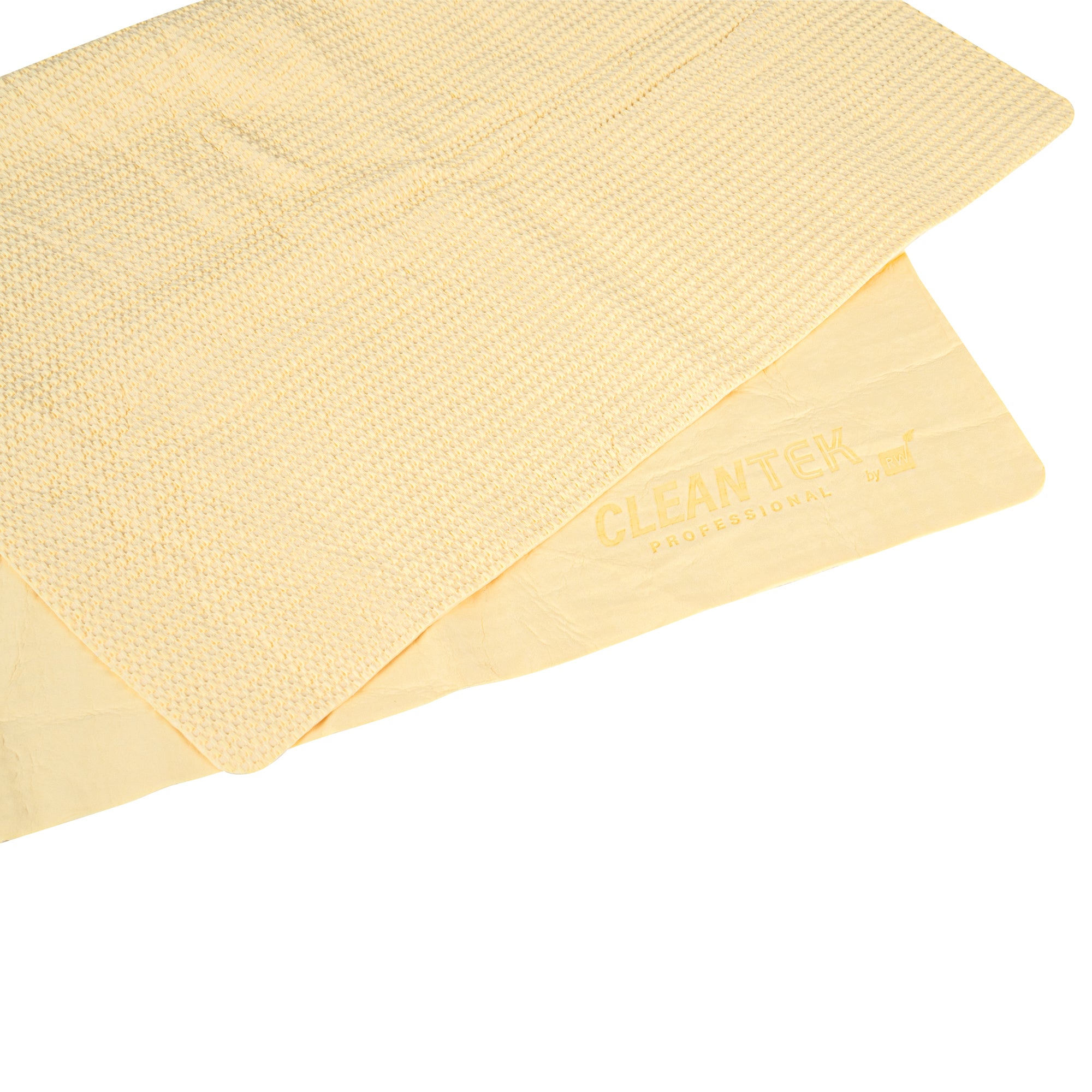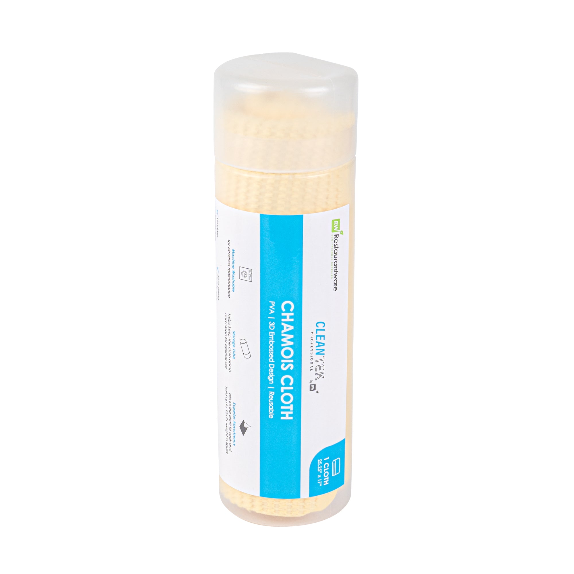 Elevate your cleaning routine with our Clean Tek Professional Yellow 3D Chamois Cloth. Crafted from PVA microfiber, this cleaning cloth hardens when it dries and discourages bacterial growth, preserving the cleanliness of your space. The unique 3D texture of this cleaning rag adds depth to its surface for an improved grip, enhancing both control and efficiency during cleaning tasks. This chamois cloth comes with a plastic storage tube, ensuring it stays damp and clean for future use. Each cleaning towel is highly-absorbent, making it adept at quickly soaking up liquids and tackling various cleaning applications. This wiping rag excels in a variety of cleaning tasks, proving to be a practical and efficient solution for diverse surfaces and applications. Featuring a lint-free material, this car wash towel leaves a spotless and glossy finish, eliminating the concern of residual fibers. With a zero-pilling design, this yellow cleaning cloth reduces the chance of forming lint balls, ensuring lasting use in foodservice establishments as well as at home. Ideal for tending to polished surfaces, this wiping cloth is scratch-free, ensuring a gentle yet effective cleaning process. This chamois towel is machine washable, making it easy to maintain and reuse. The bright yellow hue of this multipurpose cleaning cloth facilitates easy identification to avoid mix-ups and confusion. Measuring 25.25 inches in length by 17 inches in width, this dusting cloth offers extensive coverage for all your cleaning needs. Sold in a 1 count box.