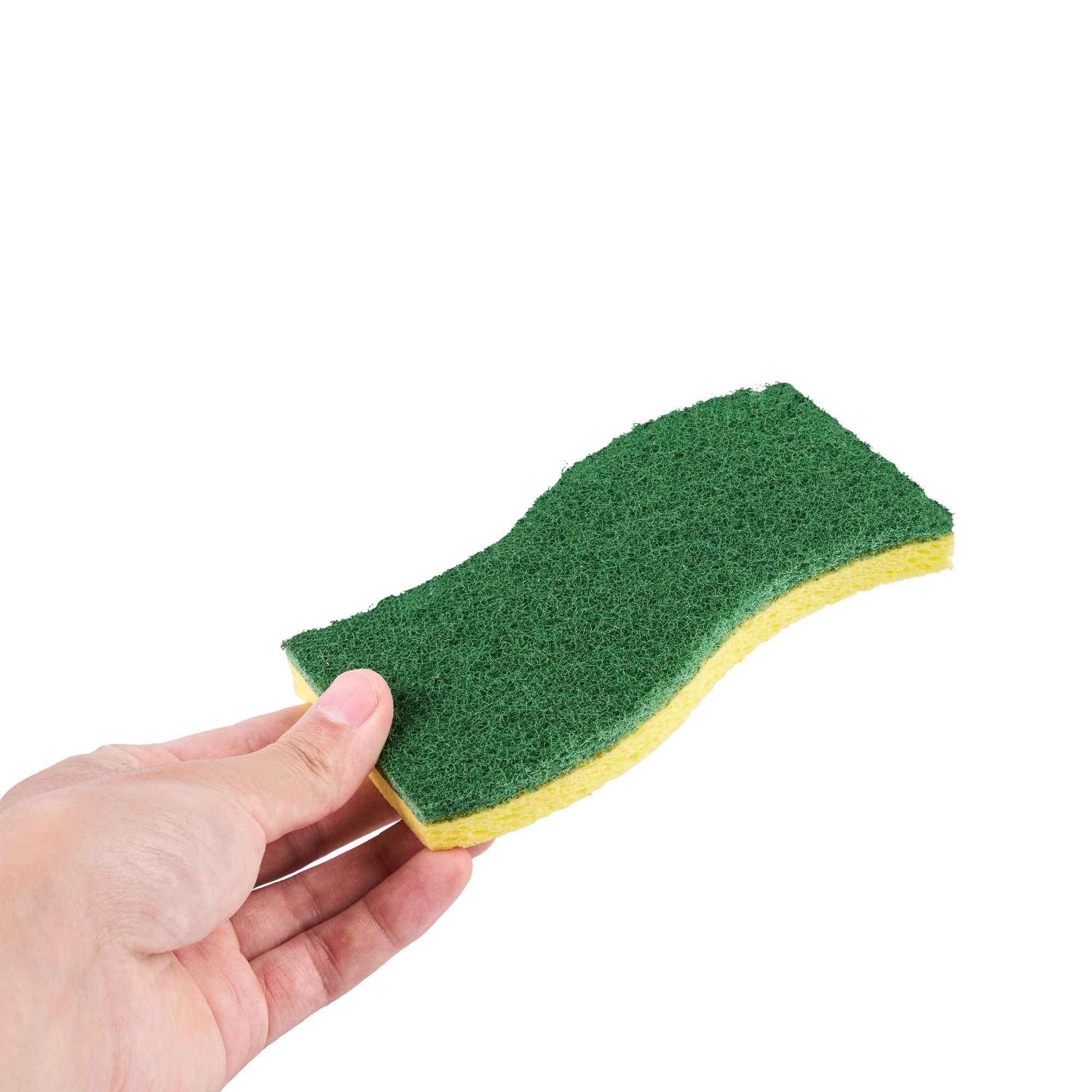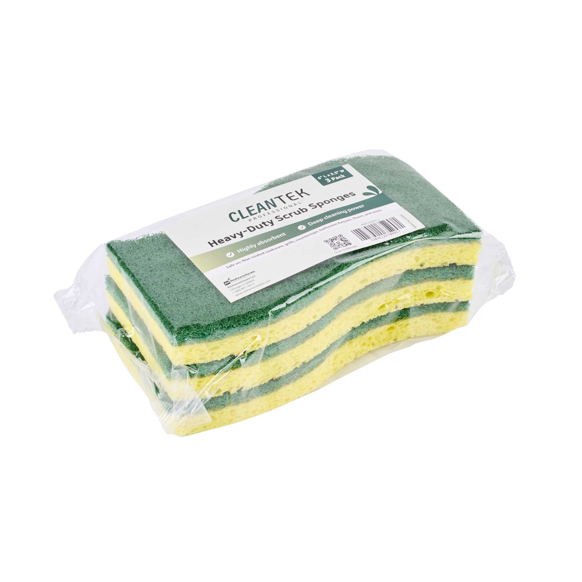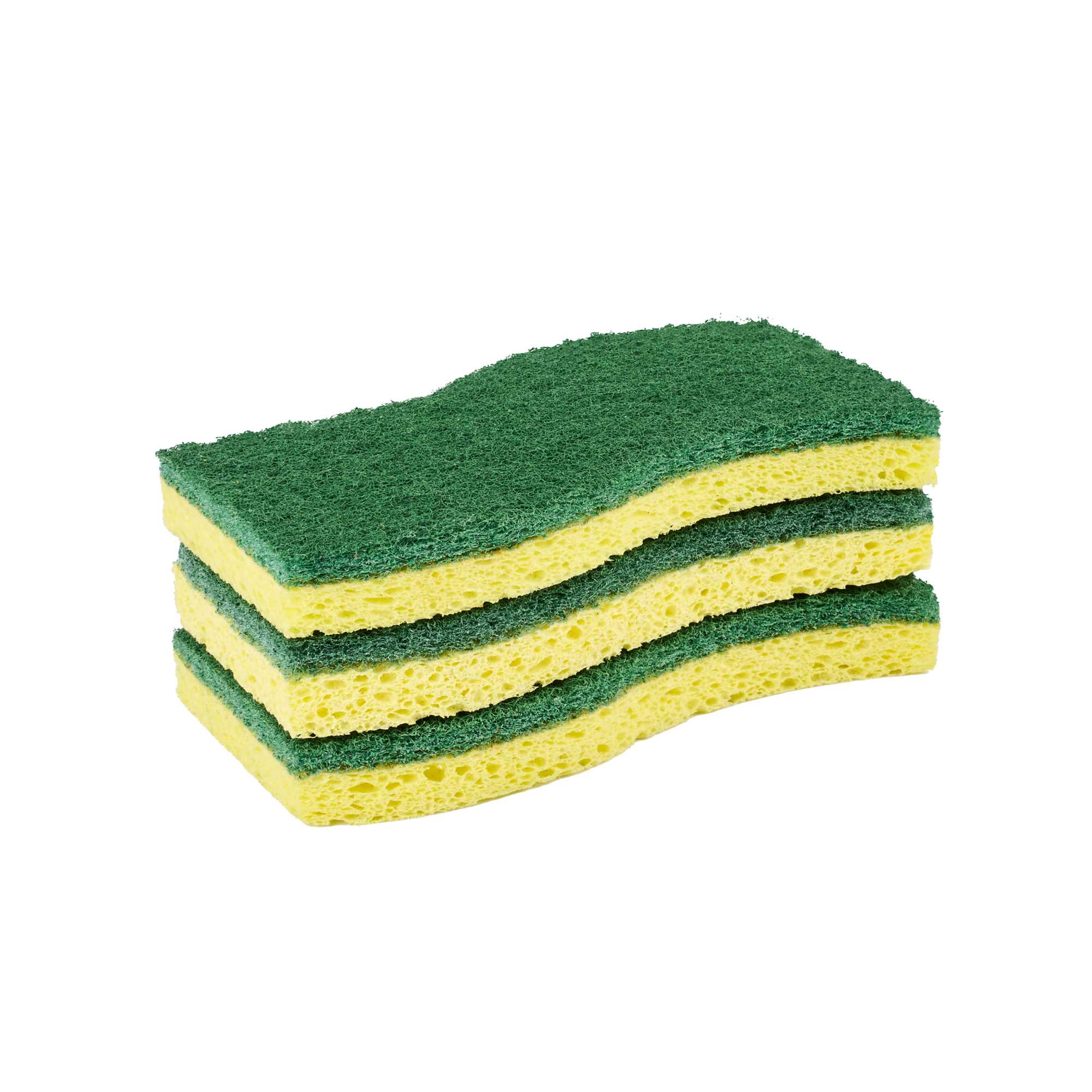 Conquer kitchen cleaning tasks with our Clean Tek Professional Yellow Cellulose Sponge / Green Heavy-Duty Scouring Pad Combos. Combining a yellow sponge and a green scouring pad in one robust tool, apt for scrubbing walls, railings, floors, and countertops in commercial kitchens. Its dual-sided design tackles tough grease and grime efficiently, while the wavy shape ensures a comfortable grip, allowing for extended use without discomfort. Crafted from absorbent cellulose, these kitchen sponges quickly soak up liquids, making them ideal for cleaning coffee makers, desks, and stairways. Its large surface area cleans dishes quickly and efficiently, making it an indispensable tool in busy foodservice settings. The heavy-duty scrubbers are effective for removing baked-on food residue and grease, making them a versatile sponge scrubber for any task. These sponges measure 5.98 inches in length by 3.5 inches in width. Sold in a 3 count box.