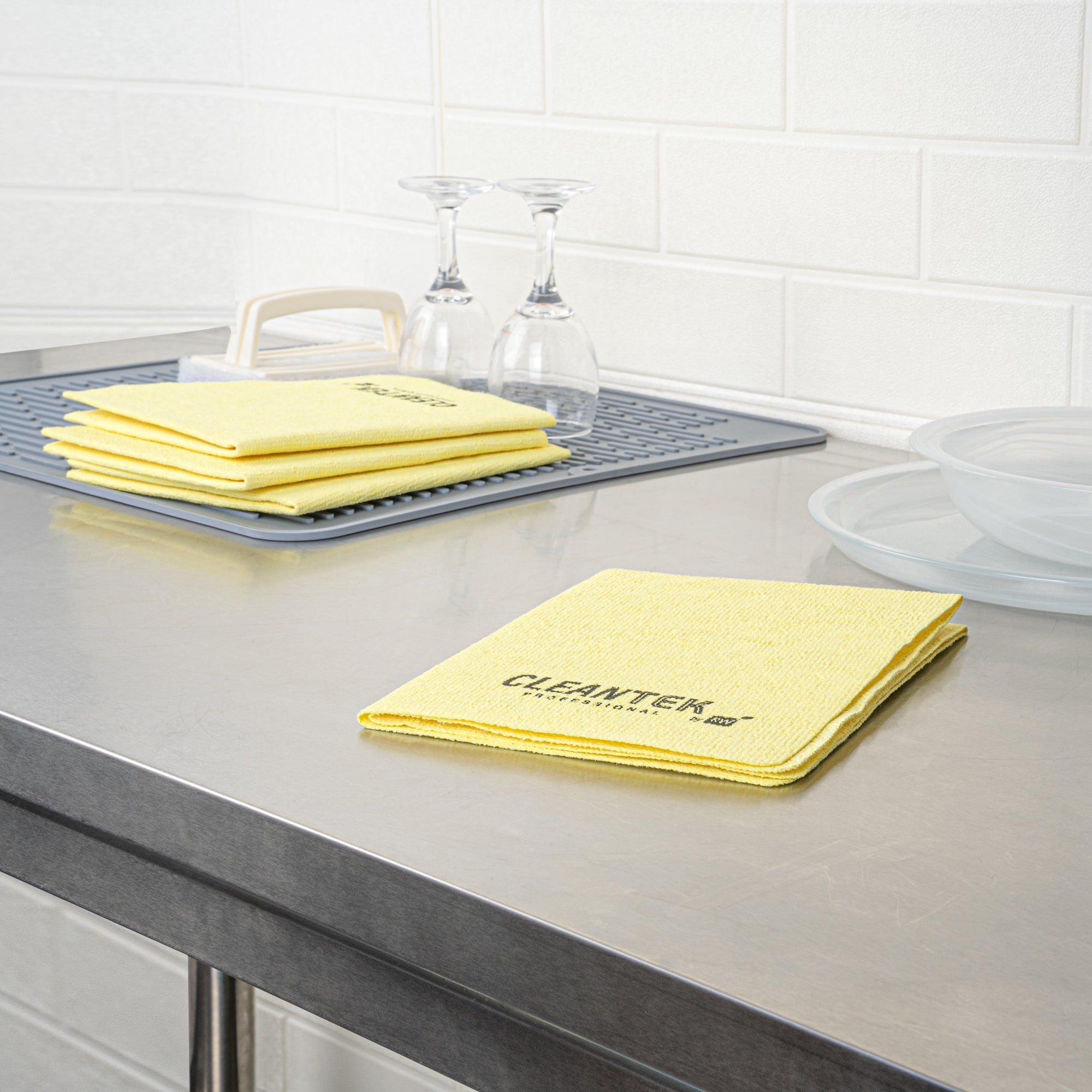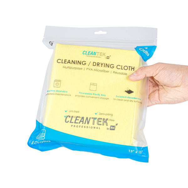Maximize your cleaning efficiency with our Clean Tek Professional Yellow Microfiber Cleaning / Drying Cloths. Made from PVA microfiber, these cleaning cloths are designed to harden when they dry, ensuring they do not breed bacteria. These microfiber towels are highly absorbent to efficiently soak up liquids for effective and thorough cleaning. Ideal for dusting, polishing, and wiping surfaces, these cleaning rags are multipurpose to offer versatility in cleaning a wide range of household and professional applications. These microfiber cloths are lint-free to ensure a clean and effective wiping experience, leaving surfaces free from unwanted fibers and contributing to a high level of cleanliness. The zero-pilling design of these cleaning towels ensures a durable and effective cleaning experience, preventing the formation of fuzzy balls. Compatible with various types of cleaning agents, these car wash towels offer versatility for all your cleaning tasks. These wiping rags are scratch-free and provide a gentle and effective cleaning solution to ensure surfaces remain free from scratches or damage during use. Each microfiber rag is machine washable, ensuring easy maintenance and long-lasting use. The yellow finish of these drying cloths facilitates easy identification, reducing the risk of mix-ups and ensuring efficient use for specific tasks. Measuring 13 inches in length by 15 inches in width, these yellow drying cloths offer a generous surface area for efficient cleaning. Sold in a 100 count box.