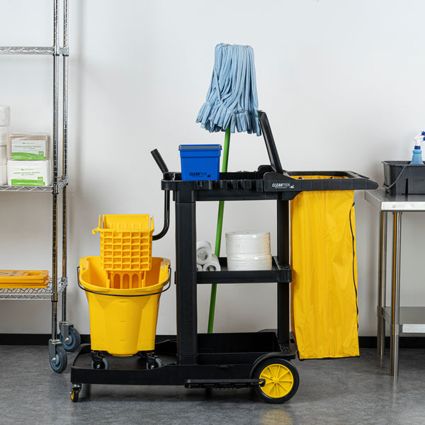 Optimize your cleaning routine with our Clean Tek Professional Yellow Plastic Bag. This laundry bag is compatible with the 3-shelf janitor cart (SKUs: RWT1990B, RWT1991B, and RWT1992B), ensuring a perfect fit for seamless waste collection. Featuring a convenient side zipper, this large plastic bag allows for easy emptying of contents without the hassle of lifting the entire bag. The metal-reinforced hanging holes on this heavy-duty plastic bag add extra durability, making them reliable for long-term use. Installing or removing this large plastic bag from your janitorial cart is a breeze, ensuring quick and easy transitions during your cleaning routines. This yellow janitor cart bag supports color-coded waste segregation, making it easy to identify and sort different types of waste while providing a clean look. Measuring 16.93 inches in length by 10.63 inches in width by 29.53 inches in height, this janitor cart bag is ideal for a variety of cleaning needs. Sold in a 1 count box. Janitor carts are available and sold separately.