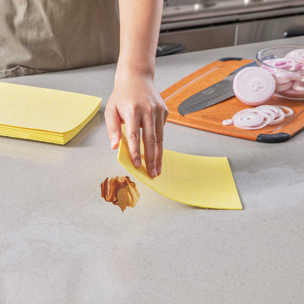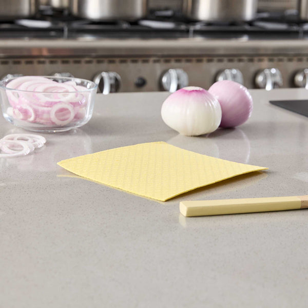 Streamline cleaning routines with our Clean Tek Professional Yellow Reusable Swedish Dishcloths. Made from ultra-absorbent cellulose, these yellow Swedish dishcloths efficiently soak up spills and wipe down surfaces, supporting quick service in commercial kitchens. Their flexible texture softens when wet for gentle cleaning and firms up when dry for effective scrubbing. Designed to be dishwashable and reusable, these cloths minimize disposable waste while maximizing long-term utility. As a biodegradable and compostable cleaning option, they align with eco-friendly initiatives in foodservice environments. Durable enough for repeated use, these reusable dishcloths provide consistent performance shift after shift. Measuring 6.77 inches by 7.68 inches, each cloth offers ample surface coverage for countertops, sinks, or equipment. Sold in a 10 count box.
