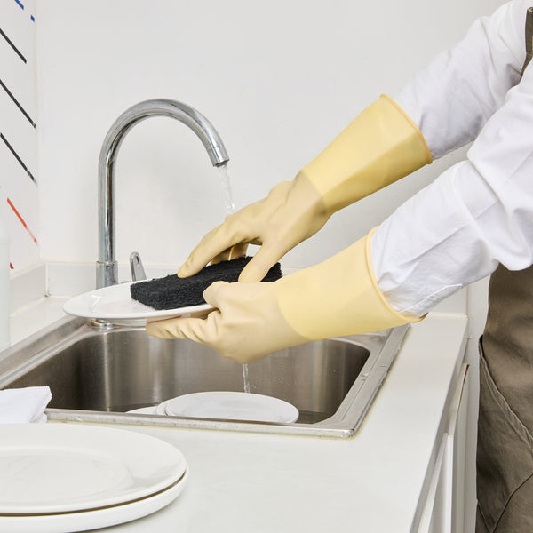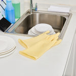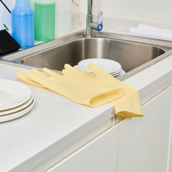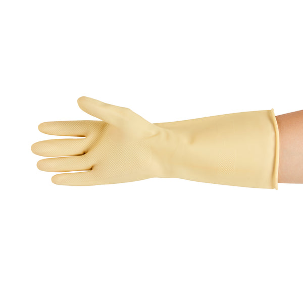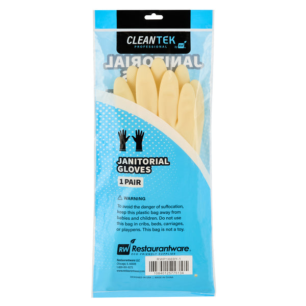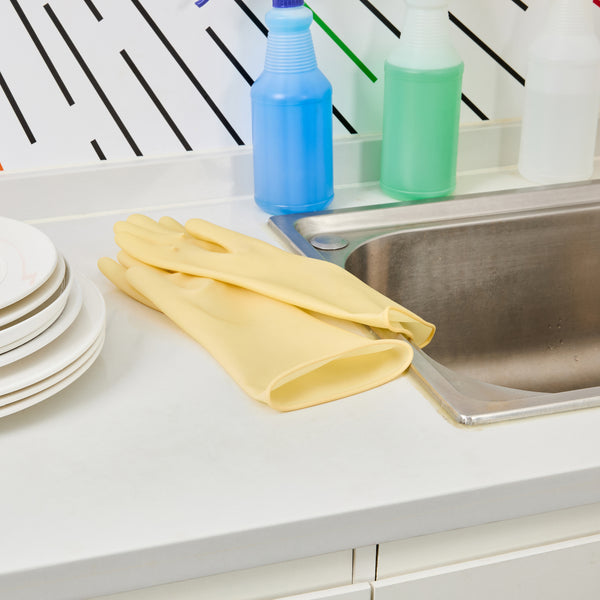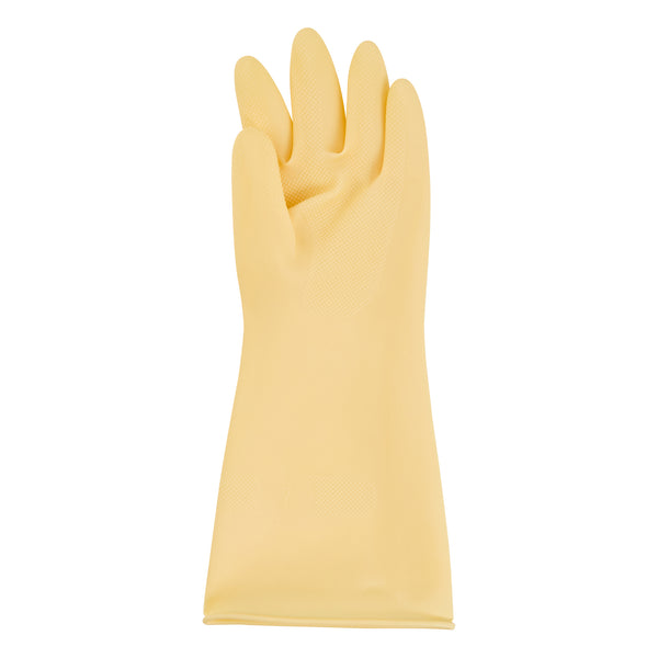 Ensure a safe kitchen environment with durable protective gear. Clean Tek Puncture-Resistant Latex Cleaning Gloves offer puncture resistance, making them ideal for prolonged use during food prep without compromising safety. These household rubber gloves feature a longer cuff designed to shield your wrists from unwanted splashes, providing added protection in bustling kitchen settings. With outstanding grip performance, these gloves enhance the handling of utensils and equipment, ensuring efficiency and precision in every task. Crafted from yellow rubber, these gloves measure 12.99 inches in length and 4.17 inches in width, delivering both flexibility and reliability in foodservice operations. Equip your staff with these latex cleaning gloves for optimal performance in any food preparation environment. Each order includes 10 Clean Tek Puncture-Resistant Latex Cleaning Gloves.