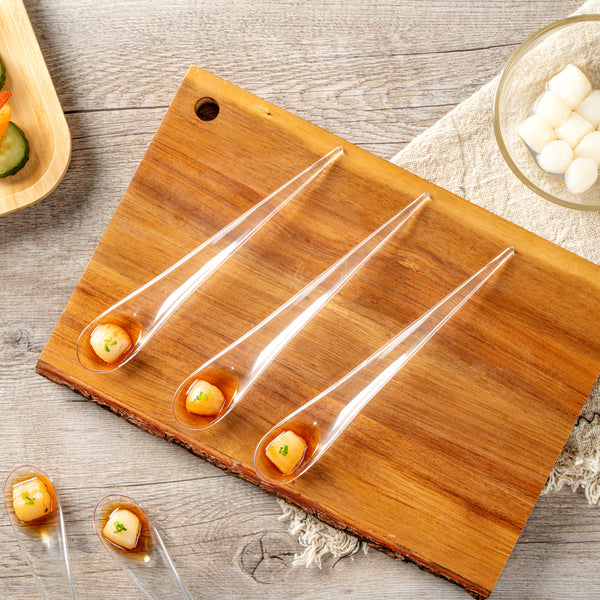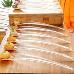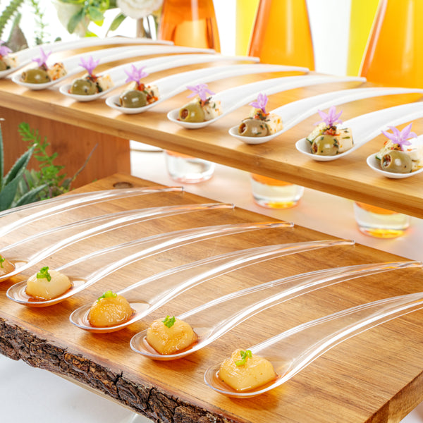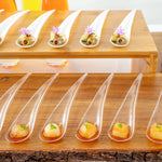 Measuring 8 inches long, these plastic spoons are ideal for all kinds of small bites. Easily serve small appetizers, samplers, or desserts!