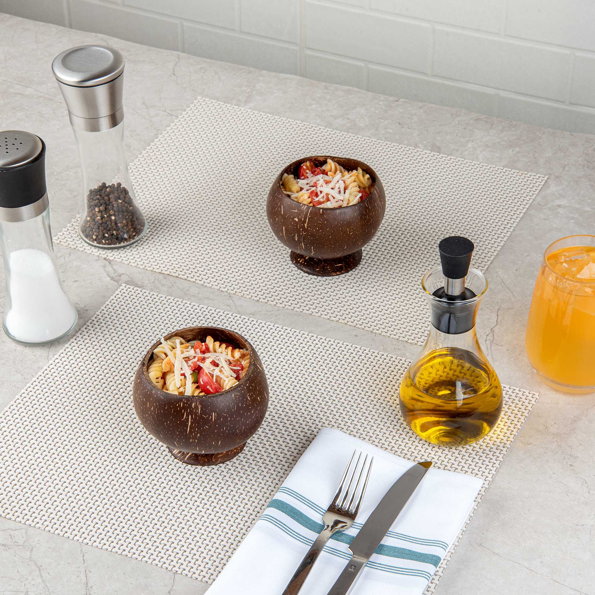 Enhance customer experiences with sustainable drink presentations. Coco Casa Coconut Shell Cup delivers an eco-friendly and reusable alternative to traditional drinkware, offering a 10-ounce capacity perfect for tiki bar drinkware and standard cocktail servings. Featuring a stable wooden base that prevents spills, these cups enhance operational efficiency by minimizing waste and accidents. Handmade artisanal craftsmanship adds a unique elegance to any table setting, making them ideal for themed events or beach resorts. Each coconut cocktail cup is crafted from real coconut shells, providing a natural brown color and a distinctive touch, while its biodegradable and compostable nature supports sustainability initiatives. Perfect for enhancing tropical themes, these cups measure approximately 3.94 inches by 3.94 inches, adding a charming touch to any drink service. Each order includes 4 Coco Casa Coconut Shell Cup.