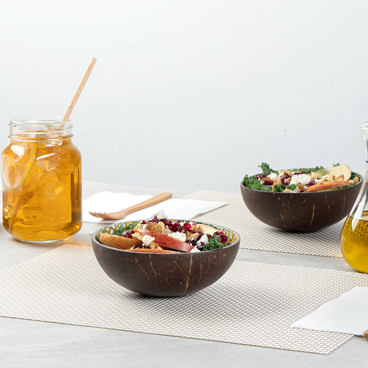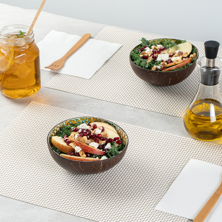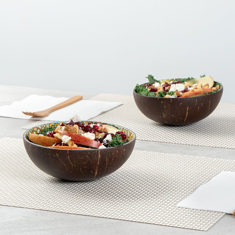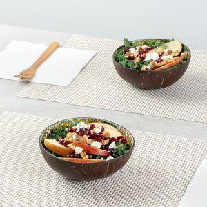 Enhance your presentation with eco-friendly elegance. The Coco Casa 16 oz Green Coconut Handmade Eggshell Coconut Bowl offers unique eggshell patterns with a mother-of-pearl inlay that transforms every dish into a stunning visual experience. Crafted from sturdy coconut, this natural coconut bowl measures 5.91 inches in length, width, and 2.36 inches in height, ensuring it adeptly serves both warm and cold foods without compromising its integrity. Each handmade bowl adds an authentic touch to culinary creations, making it the ideal choice for restaurants and caterers seeking sustainable serving solutions. As biodegradable and BPA-free, this coconut serving bowl not only supports environmentally conscious practices but also ensures a safe dining experience. Elevate your foodservice presentation with these distinctive bowls and delight your guests with their one-of-a-kind design. Sold in a 10 count box.