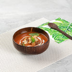 Enhance your dining experience with handcrafted charm and resilience. The Coco Casa 16 oz Handmade Coconut Bowl is designed to bring an authentic touch to your culinary creations with its handmade construction, ensuring each meal feels special. This coconut shell bowl features a polished surface that elevates the presentation of your dishes, impressing guests with its refined elegance. Made with sturdy coconut, it supports both warm and cold foods, making it versatile for various menu items. Its dimensions of 5.91 inches in length and width and 2.36 inches in height offer a generous capacity of 15.84 ounces, making it perfect for serving generous portions. As a natural coconut bowl, it is biodegradable and compostable, aligning with sustainable dining practices. Enjoy the long-lasting benefits of this reusable coconut bowl, ideal for eco-conscious establishments. Sold in a 10 count box.