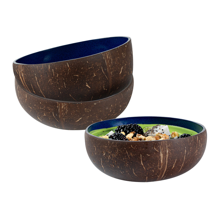 Coco Casa 16 oz Metallic Blue Handmade Coconut Bowl - 10 count box