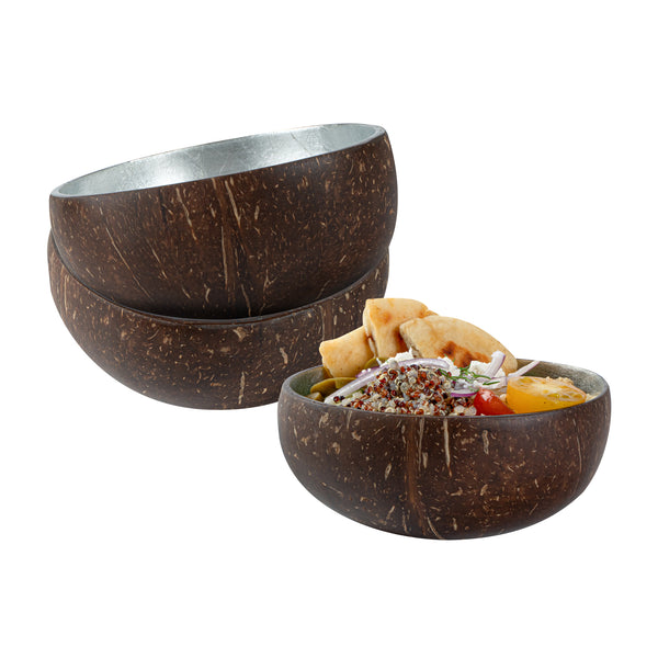 Enhance your dining experience with authentic presentation. Coco Casa 16 oz Metallic Silver Handmade Coconut Bowls are handmade to add a touch of authenticity to your culinary creations, making them perfect for showcasing your most exquisite dishes. With a metallic silver interior, these decorative coconut bowls provide a one-of-a-kind look that elevates the visual appeal of your meals. Crafted from sturdy coconut material, these bowls are designed to serve both warm and cold foods effectively, ensuring versatility in any foodservice setting. Measuring 5.91 inches in length, 5.91 inches in width, and 2.36 inches in height, these coconut bowls offer a generous 15.84-ounce capacity, ideal for serving a variety of dishes. As they are biodegradable, BPA-free, and compostable, they support sustainable operations while being freezer-safe and greaseproof. Elevate your table settings with these eco-friendly coconut serving bowls. Sold in a 1 count box.