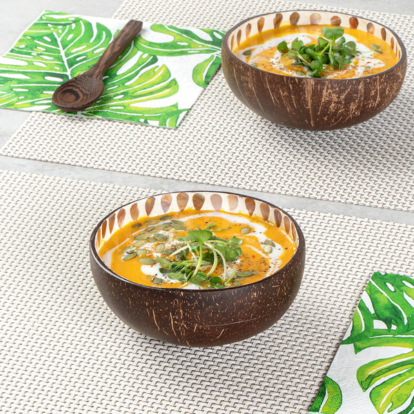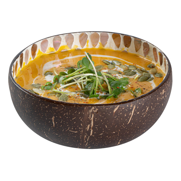 Elevate your culinary presentations with authentic elegance. Coco Casa 16 oz White Handmade Teardrop Coconut Bowls feature handmade craftsmanship that adds a distinctive touch to every dish, enhancing your foodservice offerings with a natural coconut bowl. The unique teardrop patterns and mother-of-pearl inlay give your presentations a pearl inlay bowl design that captivates diners, ensuring your creations stand out. With dimensions of 5.91 inches in length and width, and a height of 2.36 inches, these biodegradable bowls offer a sturdy design that effortlessly accommodates both warm and cold dishes, making them an indispensable asset for versatile menu items. Made from sustainable coconut, these bowls are not only biodegradable but also BPA-free and compostable, aligning with eco-conscious dining trends. Incorporate these beautiful and functional pieces into your service to make a memorable impression. Sold in a 1 count box.