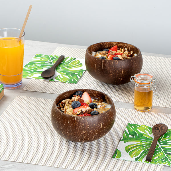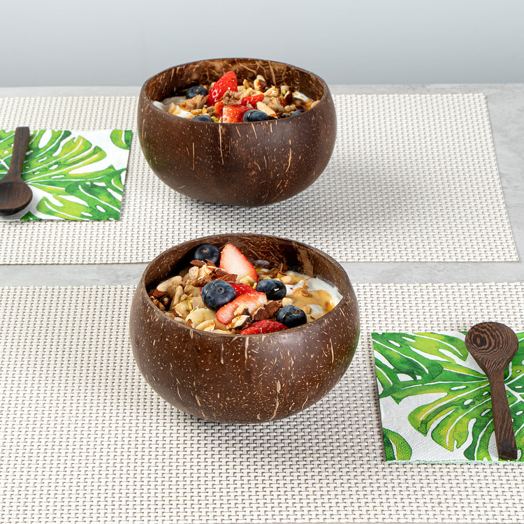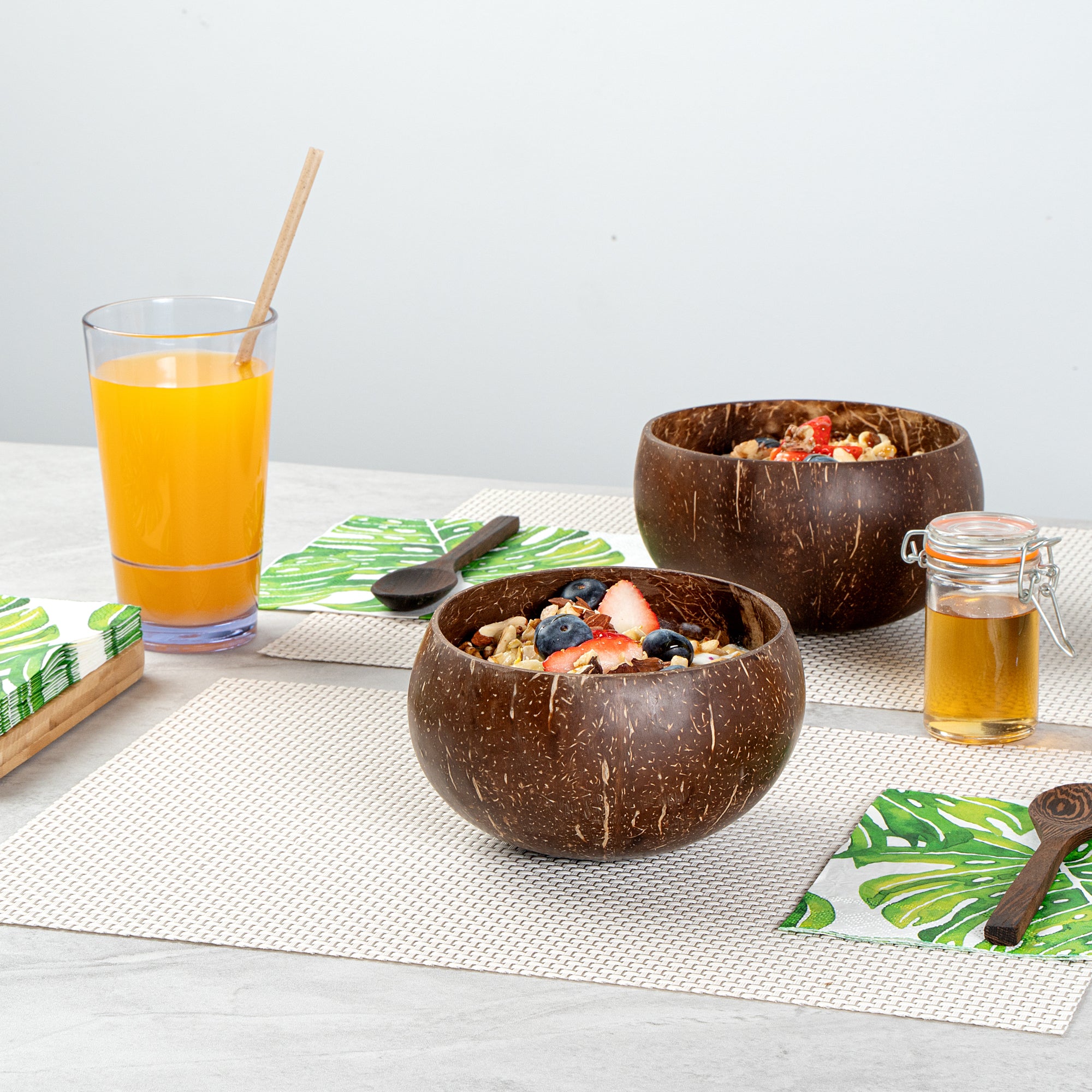 Enhance your presentation with naturally beautiful serving ware. Coco Casa 21 oz Handmade Coconut Bowls offer a unique, handmade finish that adds authenticity to every culinary creation. Expertly crafted from sturdy coconut, these bowls are perfect for serving both warm and cold dishes, making them a versatile addition to your kitchen. With a diameter of 5.91 inches, each coconut serving bowl accommodates up to 21 ounces, ideal for salads or soups. The simple cleanup allows for long-term reuse, reducing waste and promoting sustainability. Plus, these coconut salad bowls are biodegradable, BPA-free, and compostable, aligning with eco-friendly kitchen practices. Elevate your dining experience and impress your guests with these environmentally-conscious serving options. Sold in a 1 count box.