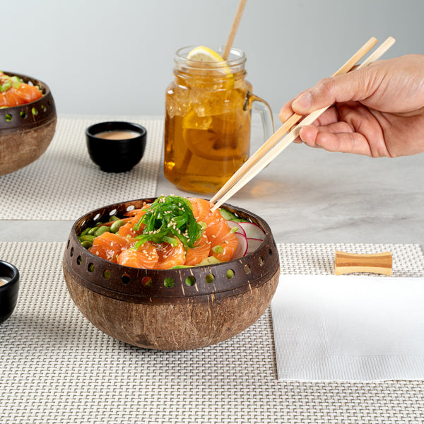 Elevate your dining presentation with natural coconut bowls. The Coco Casa 21 oz Handmade Punchout Coconut Bowl enhances culinary creations with its handmade design that adds a touch of authenticity to every dish. Featuring a punchout design, these bowls provide a one-of-a-kind look, making them ideal as an authentic coconut bowl for unique dish presentations. Crafted from sturdy coconut, these bowls are perfect for serving both warm and cold foods, catering to versatile menu options. Measuring 5.91 inches in length and width with a height of 3.15 inches, each bowl has a capacity of 21.18 ounces, offering ample space for your delectable servings. The biodegradable and BPA-free material ensures these bowls are an eco-friendly choice, meeting the needs of sustainability-focused establishments. Add these handcrafted coconut dishes to your tableware collection to impress guests and enhance your eco-friendly dining experience. Sold in a 10 count box.