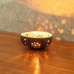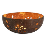 BROWN HANDMADE COCONUT SHELL CANDLE HOLDER - SUN PATTERN