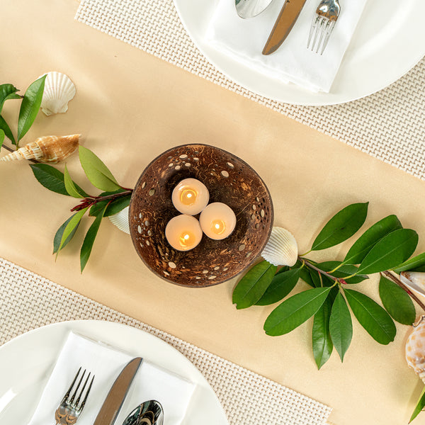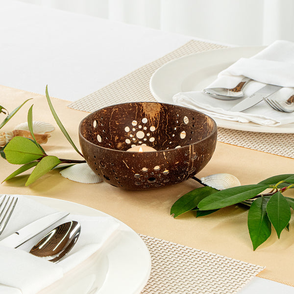 To let you pick the perfect candle holder for your theme and tablescapes, these coconut bowl candle holders are available in a variety of patterns and colors. Elevate your space effortlessly.