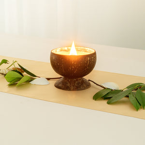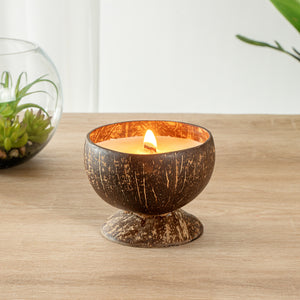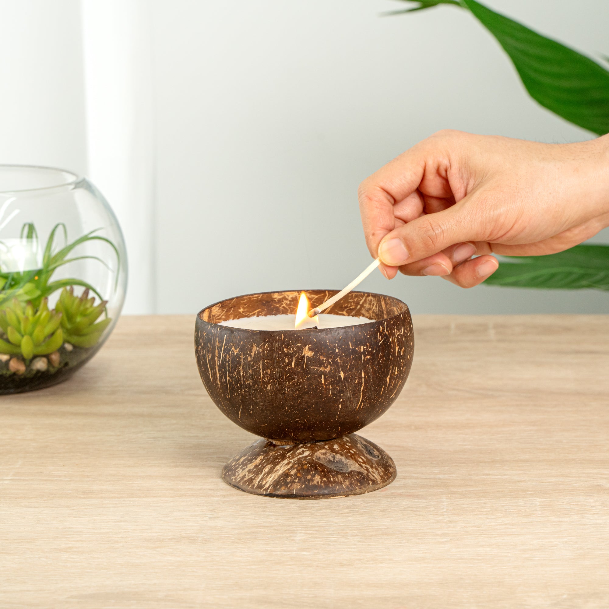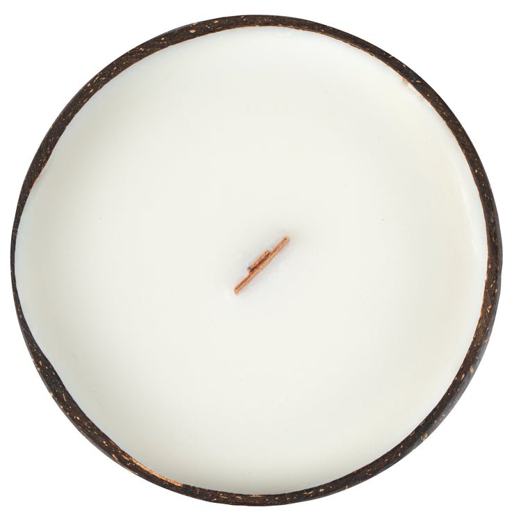 Illuminate your dining space with a touch of eco-friendly elegance using our Coco Casa Handmade Coconut Candle Bowls. These natural and handmade coconut shell candles create an inviting ambiance, while the mint leaf and eucalyptus fragrance add a refreshing touch. With a double wax blend of soy and coconut wax, these handmade scented candles ensure a clean and consistent burn, maximizing their burn time up to 13 hours. The zinc-free wooden wick of these wax candles further enhances the burning experience, providing a delightful crackling sound as it burns. These coconut bowl candles not only look great, but they also contribute to a sustainable future by reducing waste and making use of reclaimed materials that would have otherwise ended up in a landfill. After these candles have been fully used, the bowls can be repurposed for a variety of uses in your kitchen or establishment. Measuring 4 inches in diameter by 2.75 inches in height, these phthalate-free coconut candles come in a commercially compostable coconut bowl with a built-in base for stability. Sold in a 10 count box. This item will only degrade outside of the traditional solid waste stream.