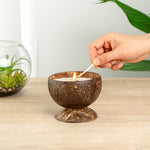Infuse your establishment with the warm, indulgent aroma of our Coco Casa Handmade Coconut Candle Bowl. Handcrafted from a reclaimed coconut shell, this coconut shell candle is not only beautiful to look at but also contributes to sustainability and waste reduction in the food industry. This handmade scented candle is infused with the calming scent of sandalwood and shea, transforming your space into a tranquil retreat. This coconut bowl candle is filled with a double wax blend of soy and coconut wax, ensuring a clean, consistent burn for up to 13 hours. Adding a unique touch, the zinc-free wooden wick of this candle enhances the ambiance with its soft, gentle flicker. This coconut wax candle also features a built-in base, providing stability and preventing wax spills. Once this candle has been fully used, the coconut bowl can be reused, further promoting sustainability. This phthalate-free coconut candle is commercially compostable and biodegradable, helping to reduce your establishment's environmental impact. With a dimension of 4 inches in diameter by 2.75 inches in height, this candle fits perfectly on tables, counters, and shelves. Sold in a 1 count box. This item will only degrade outside of the traditional solid waste stream.