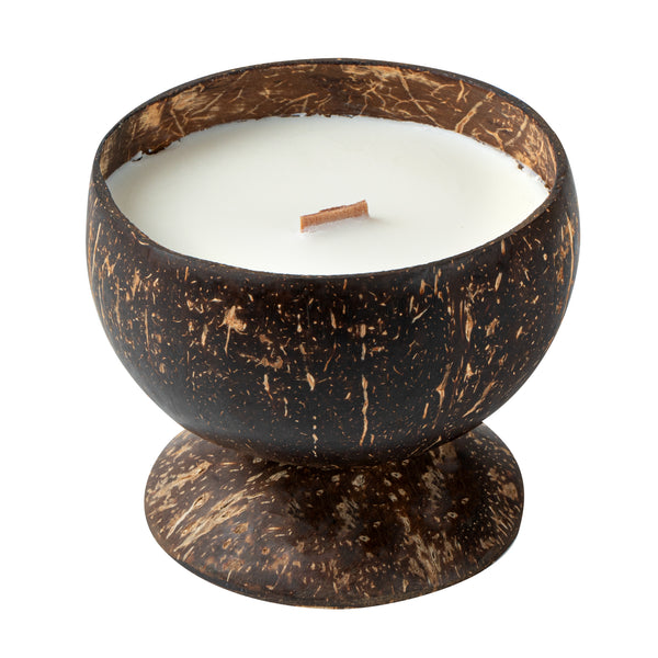 Experience a unique dining atmosphere with our Coco Casa Handmade Coconut Candle Bowls. Handcrafted from natural coconut shells, these coconut shell candles provide a sustainable and waste-reducing solution for your lighting needs. The enchanting vanilla fragrance, combined with a double wax blend of soy and coconut wax, creates a warm and inviting atmosphere for your guests. These handmade scented candles feature a zinc-free wood wick, ensuring a consistent burn that maximizes the impressive 13-hour burn time. Once these candles have fully burned, the bowls can be repurposed as decor. Commercially compostable and biodegradable, these candle bowls showcase your commitment to the environment and reclaim waste that would have otherwise ended up in a landfill. With dimensions of 4 inches in diameter by 2.75 inches in height, these coconut bowl candles are both compact and visually appealing, while the built-in base adds stability to any surface. Sold in a 10 count box. This item will only degrade outside of the traditional solid waste stream.