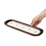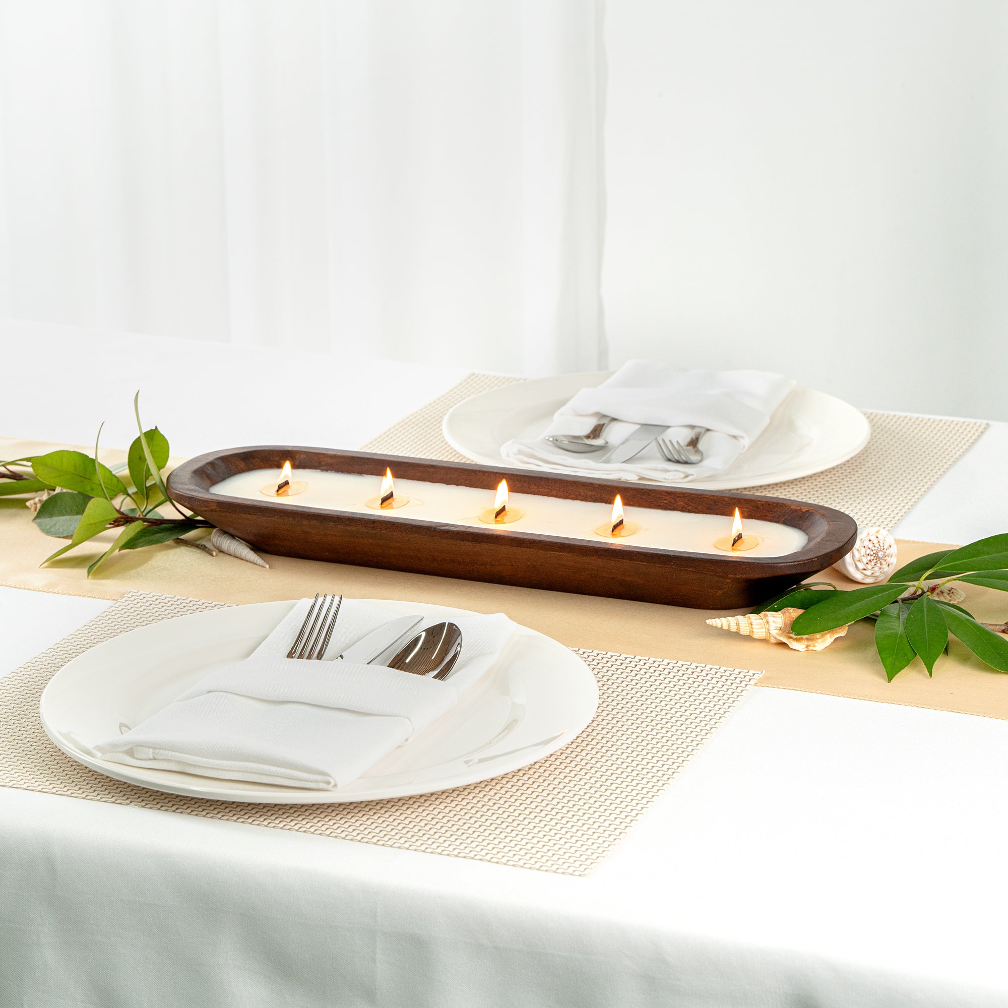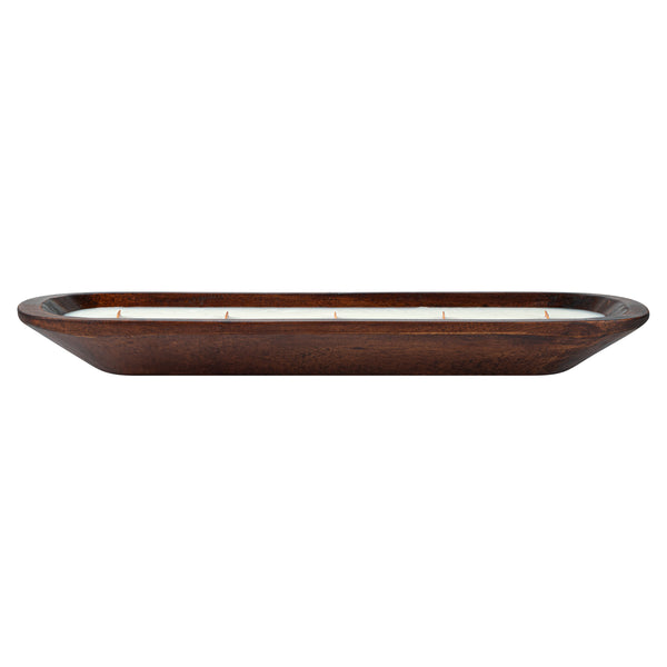 Enhance the ambiance of your bakery, restaurant, or bistro with our Coco Casa Handmade Wood Dough Bowl Candle. This natural and handmade dough bowl candle boasts a delightful coconut mango fragrance that fills the room with a warm and inviting scent. The wooden bowl is sustainably sourced, reducing waste and ensuring a reclaimed, eco-friendly option for your establishment. The unique double wax blend of soy and coconut wax of this candle ensures a long-lasting burn time of up to 20 hours, while the 5 wooden wicks provide a charming crackle effect. This handmade scented candle is zinc-free, phthalate-free, and has an attractive appearance. Once this candle has burned down, the reusable bowl can be repurposed for an array of uses. This wooden bowl candle is commercially compostable and biodegradable, ensuring a minimal environmental impact. Measuring 17.75 inches in length by 5.5 inches in width by 2 inches in height, this bread bowl candle makes a perfect centerpiece for any table setting. Sold in a 1 count box. This item will only degrade outside of the traditional solid waste stream.