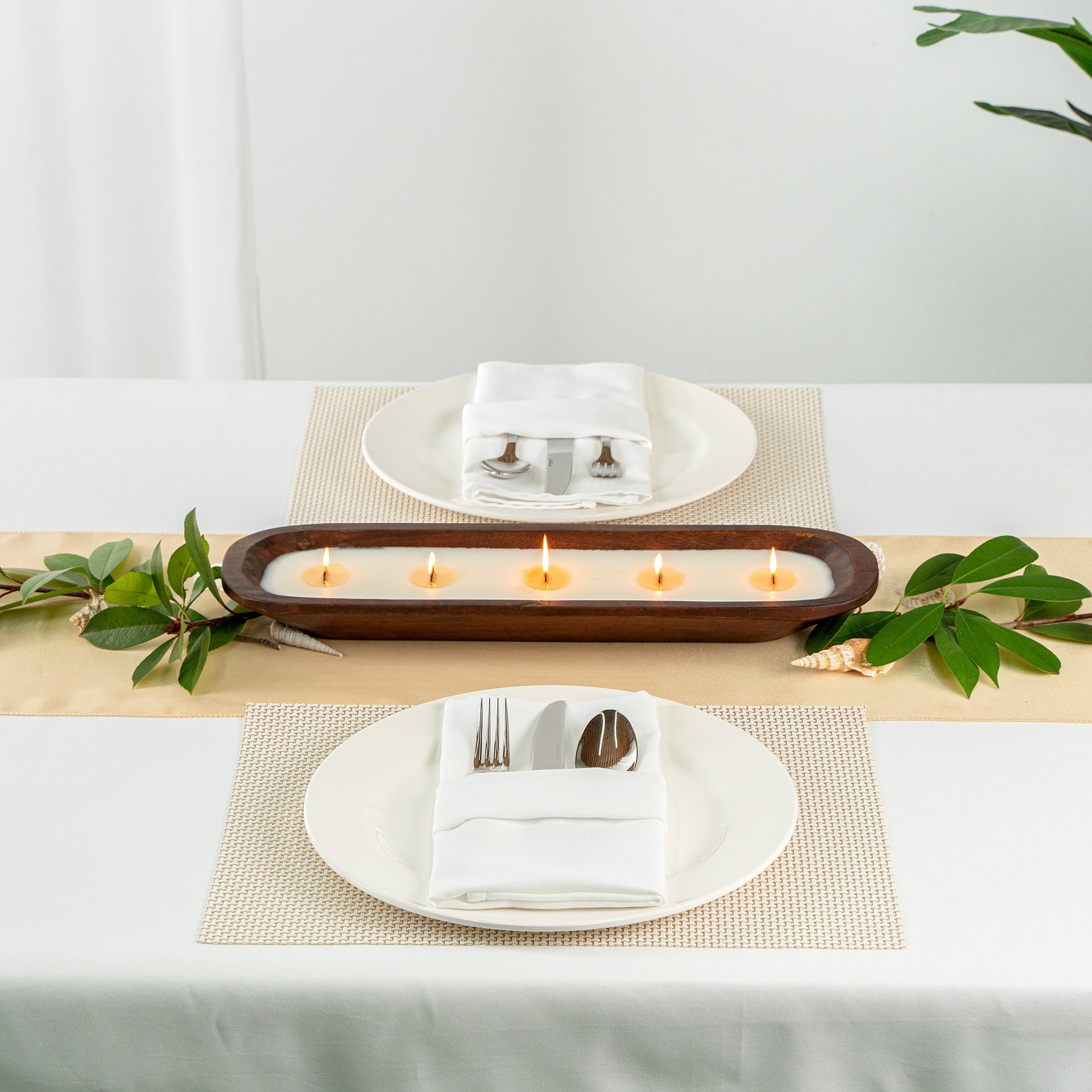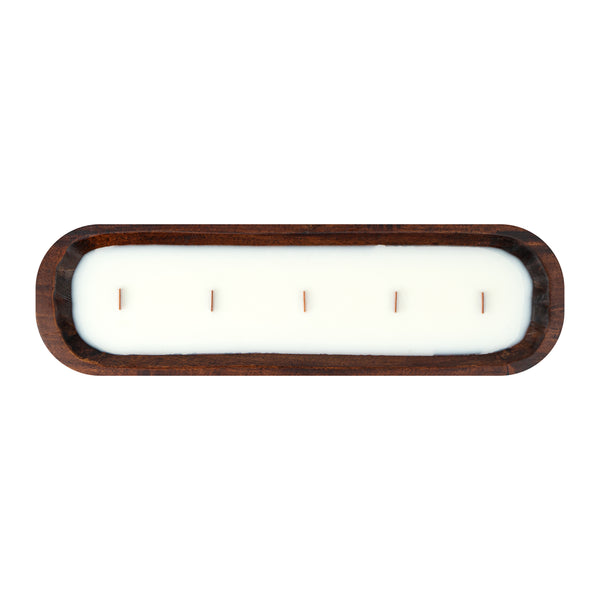 Illuminate your dining atmosphere with our Coco Casa Handmade Wood Dough Bowl Candle. Handcrafted with precision, this dough bowl candle combines a rustic aesthetic with the aromatic mint leaf and eucalyptus fragrance, providing an enchanting sensory experience. The candle is hand-poured with a double wax blend of soy and coconut wax, ensuring a clean and longer-lasting burn of up to 20 hours. The wooden bowl of this wax candle is sustainable, made from reclaimed waste that would've ended up in a landfill, thereby reducing waste and promoting a more sustainable environment. This scented candle features 5 wooden wicks, delivering a unique glow and the comforting sound of a crackling fire. The wooden bowl of this handmade candle is reusable after the candle has burned out, providing a multi-functional piece that can be used in various ways within your establishment. This wood dough bowl candle is zinc-free and phthalate-free, prioritizing your health while delivering a captivating aroma. Measuring 17.75 inches in length by 5.5 inches in width by 2 inches in height, this candle is commercially compostable and biodegradable. Sold in a 1 count box. This item will only degrade outside of the traditional solid waste stream.