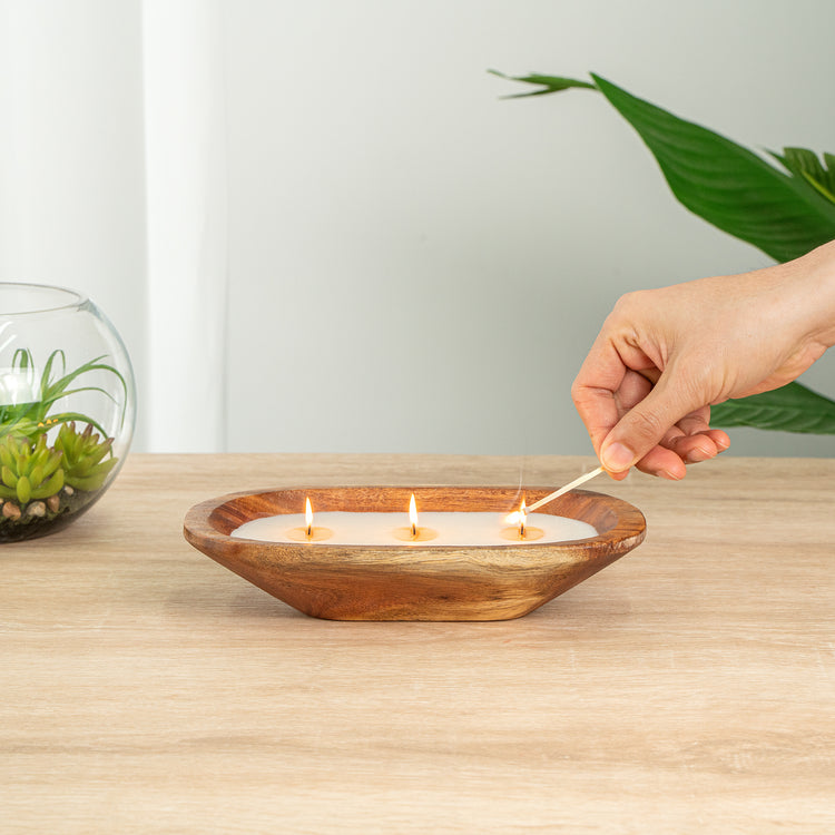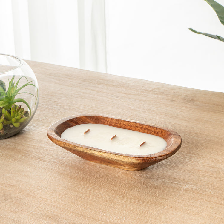 HANDMADE WOOD DOUGH BOWL CANDLE - SANDALWOOD
